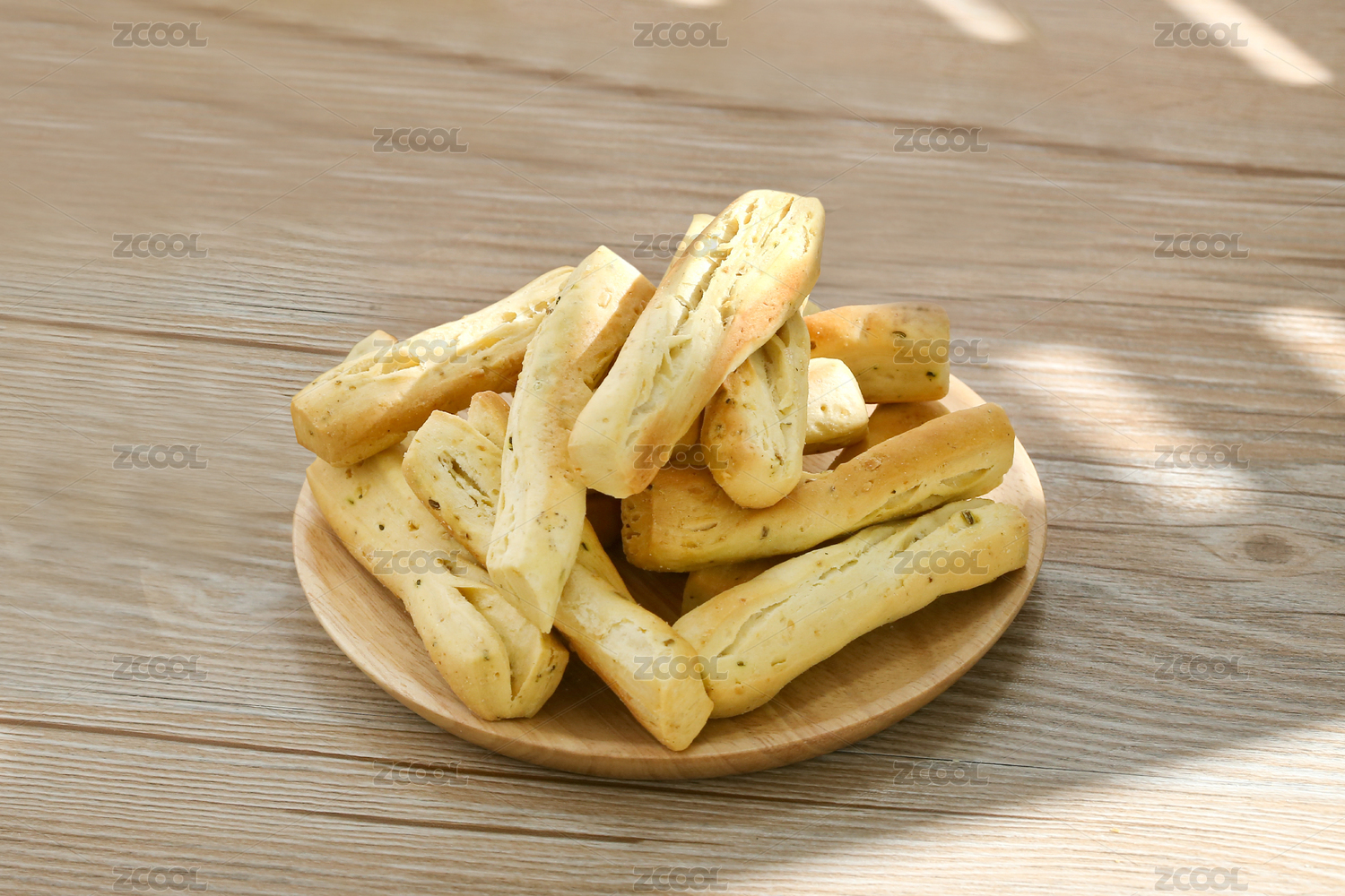 木紋背景上的陜西特產(chǎn)香酥棒棒饃
