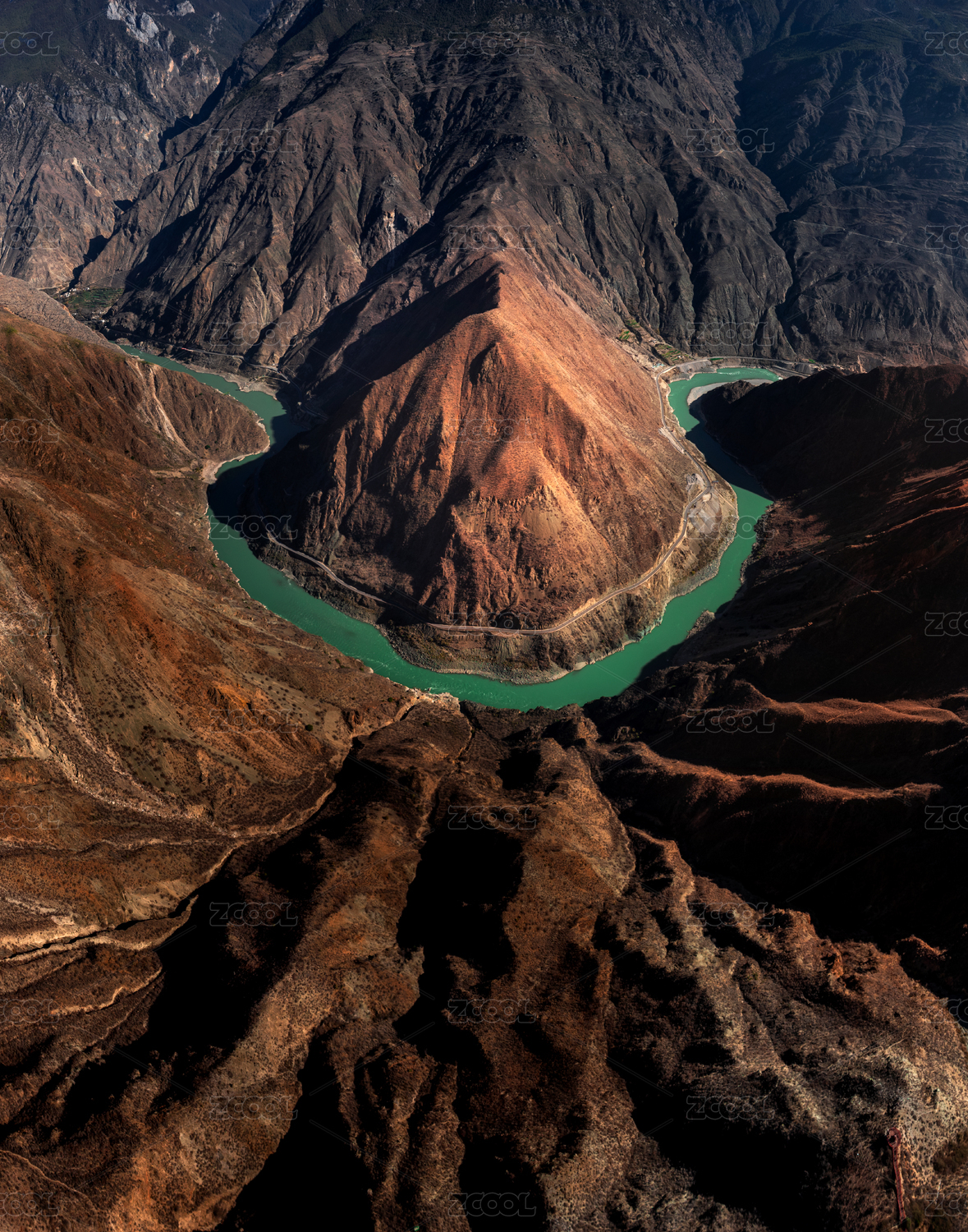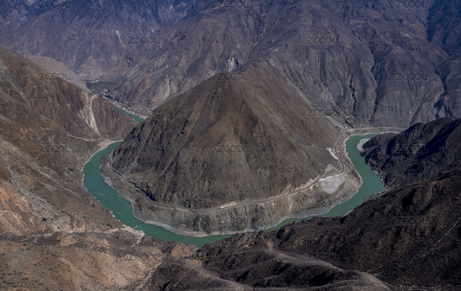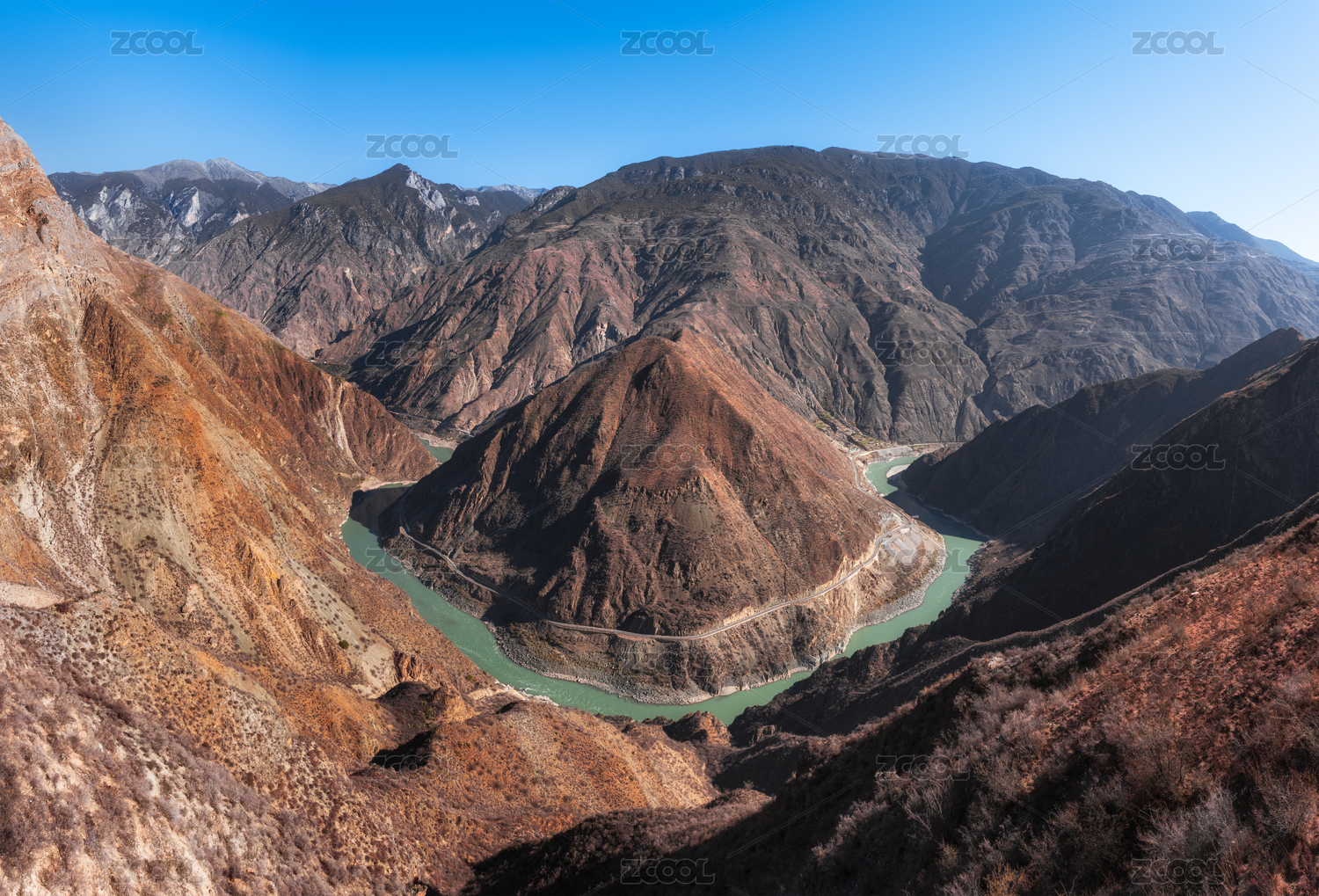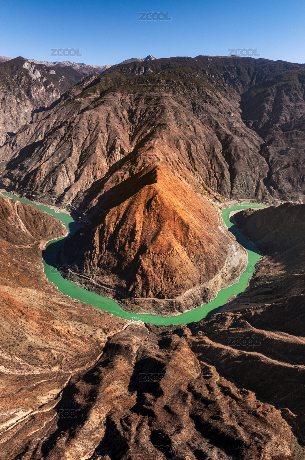 山谷間蜿蜒的河流-云南迪慶金沙江大灣