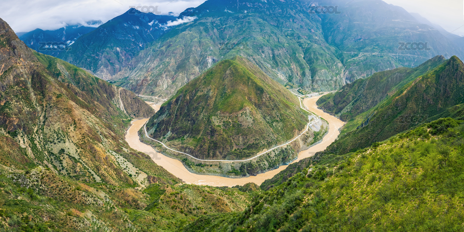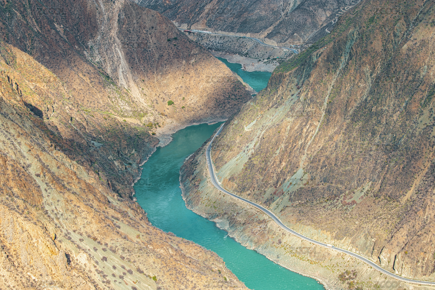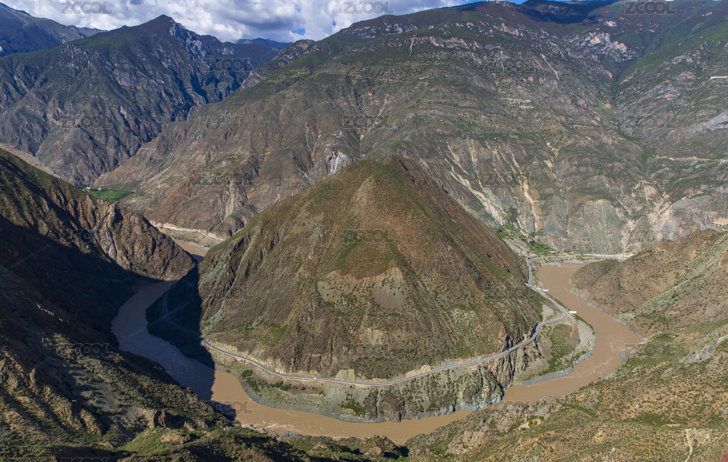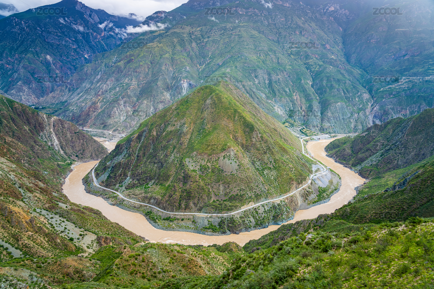 山谷間蜿蜒的河流-云南迪慶金沙江大灣