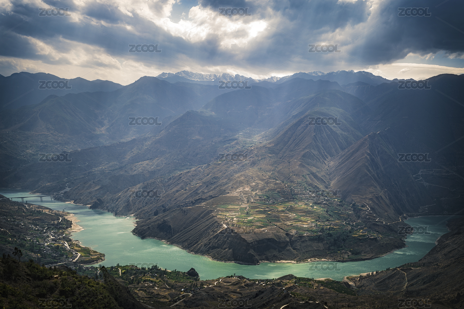 中國云南省德欽縣金沙江大轉(zhuǎn)彎自然風光
