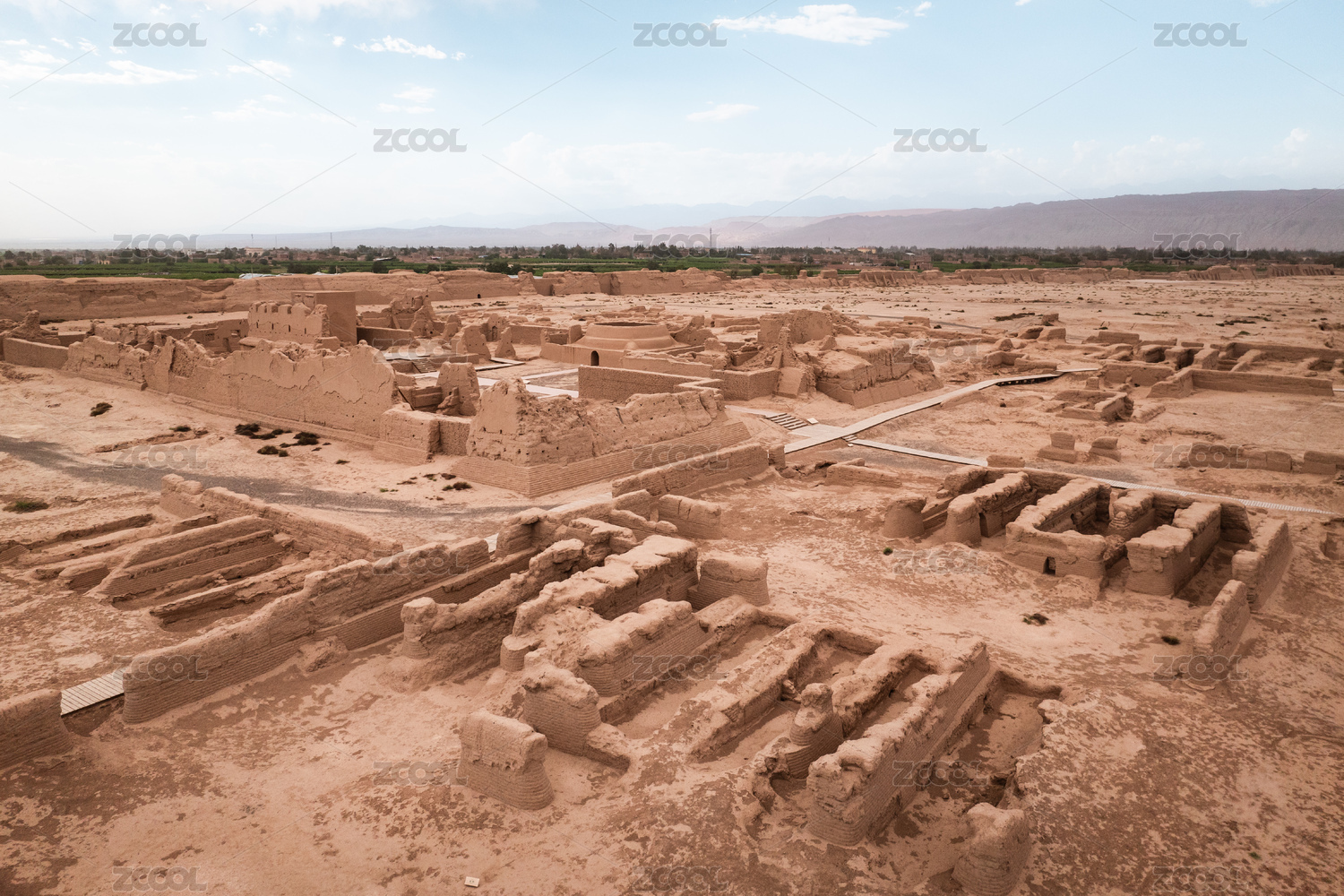 中國新疆吐魯番高昌故城歷史遺跡航拍景觀