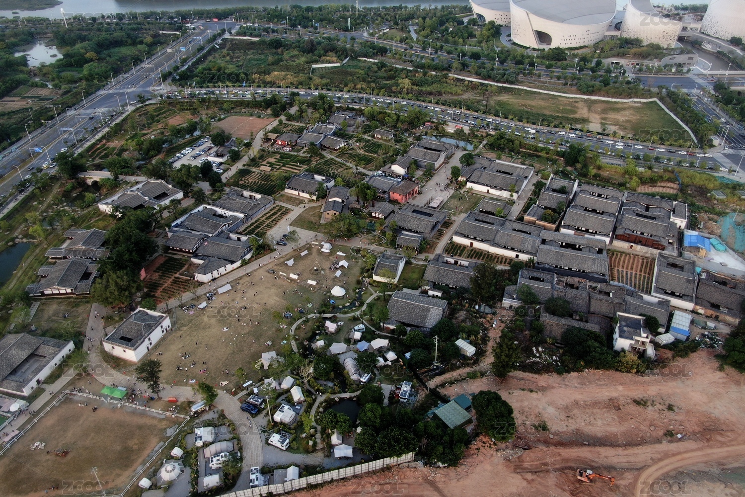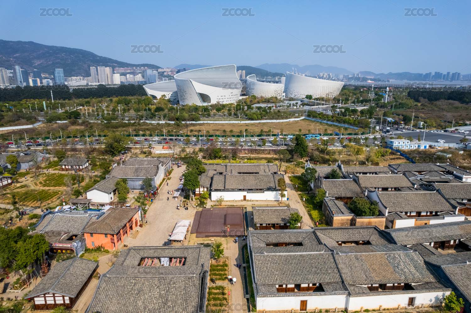 中國福建省福州市梁厝和海峽藝術(shù)宮航拍