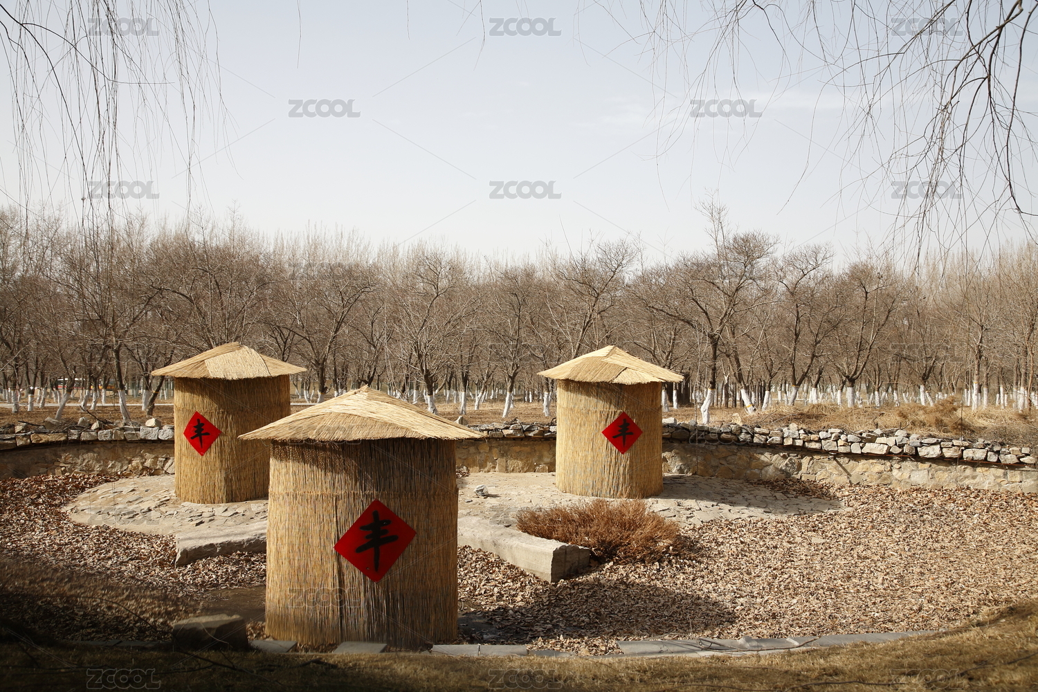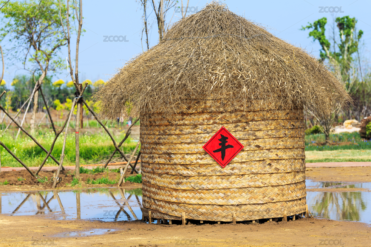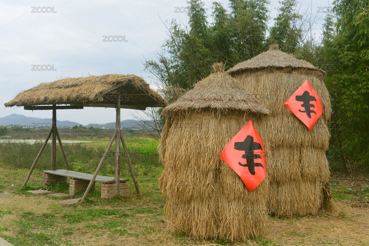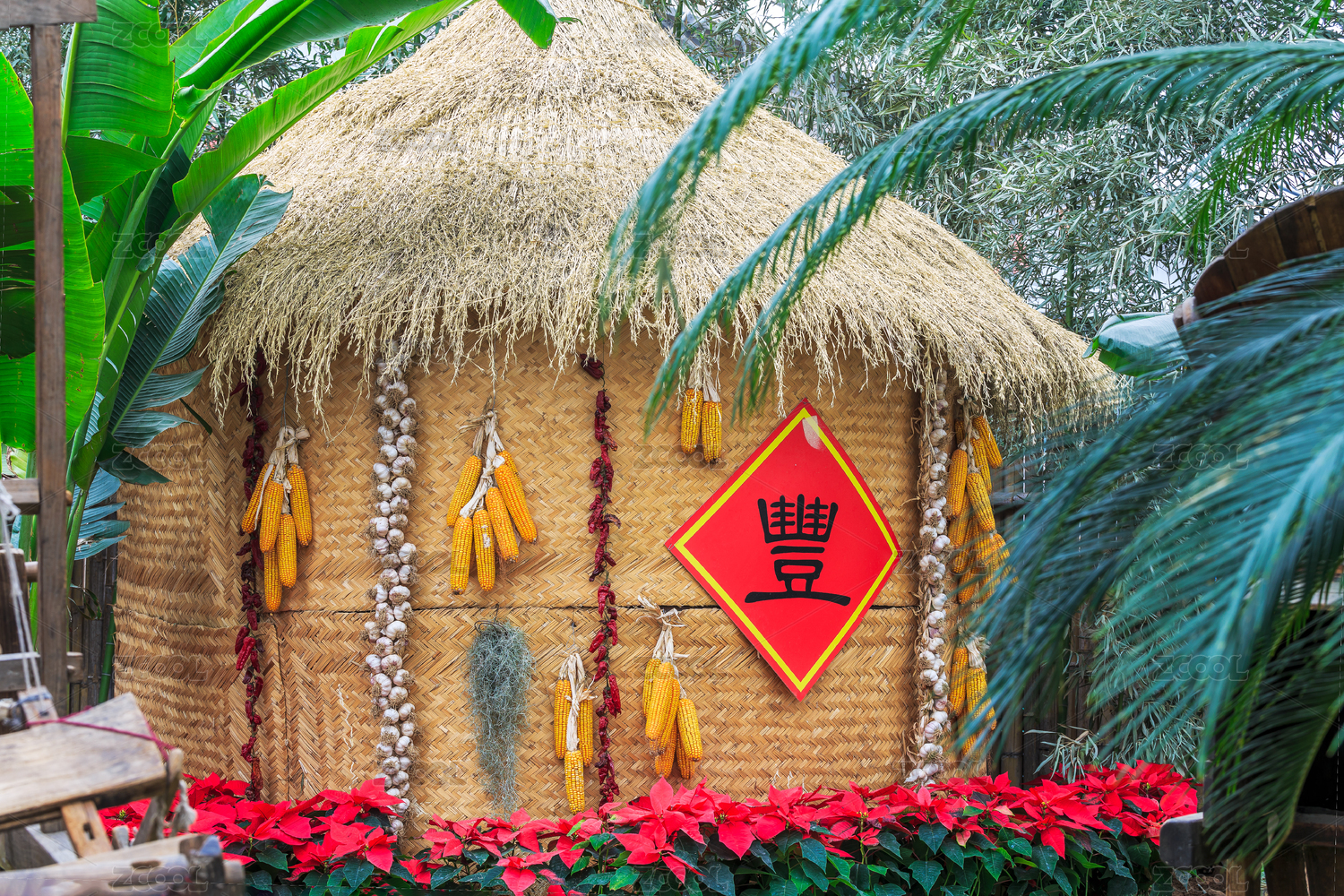 鄉(xiāng)村貼豐字儲(chǔ)存糧食的糧囤