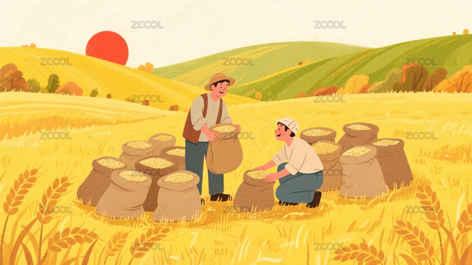 田園勞作豐收插畫