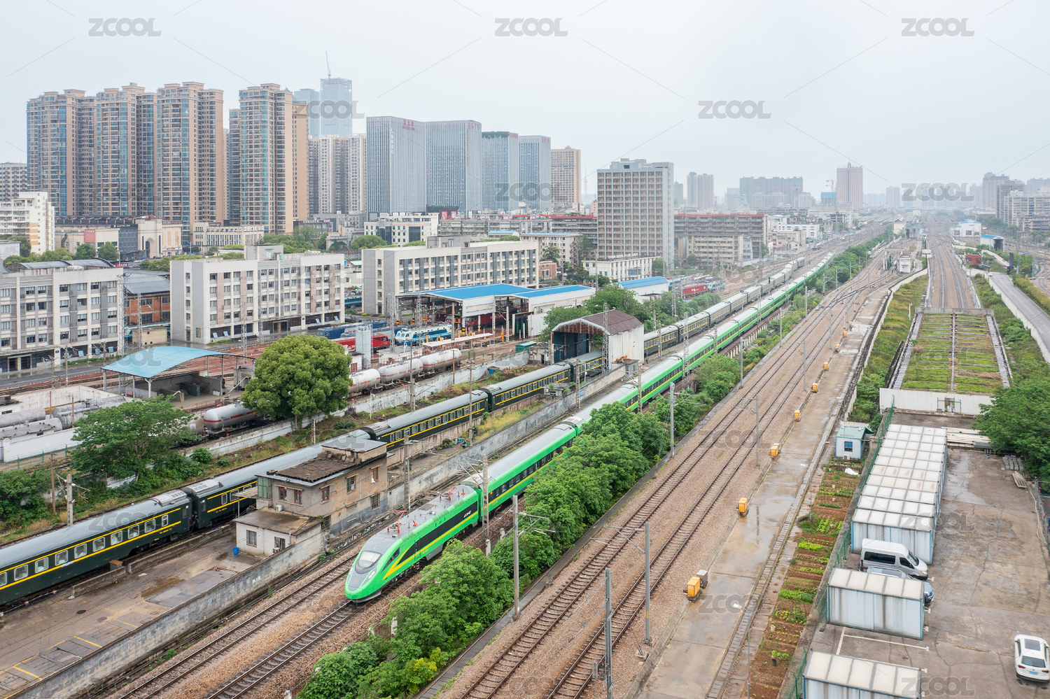 京廣鐵路綠巨人動車組駛過中國湖南省長沙市