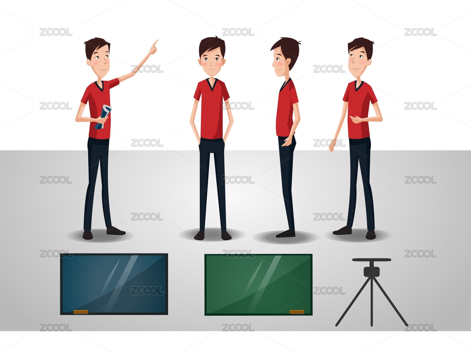 人物設計男教師或男職員黑板等矢量圖