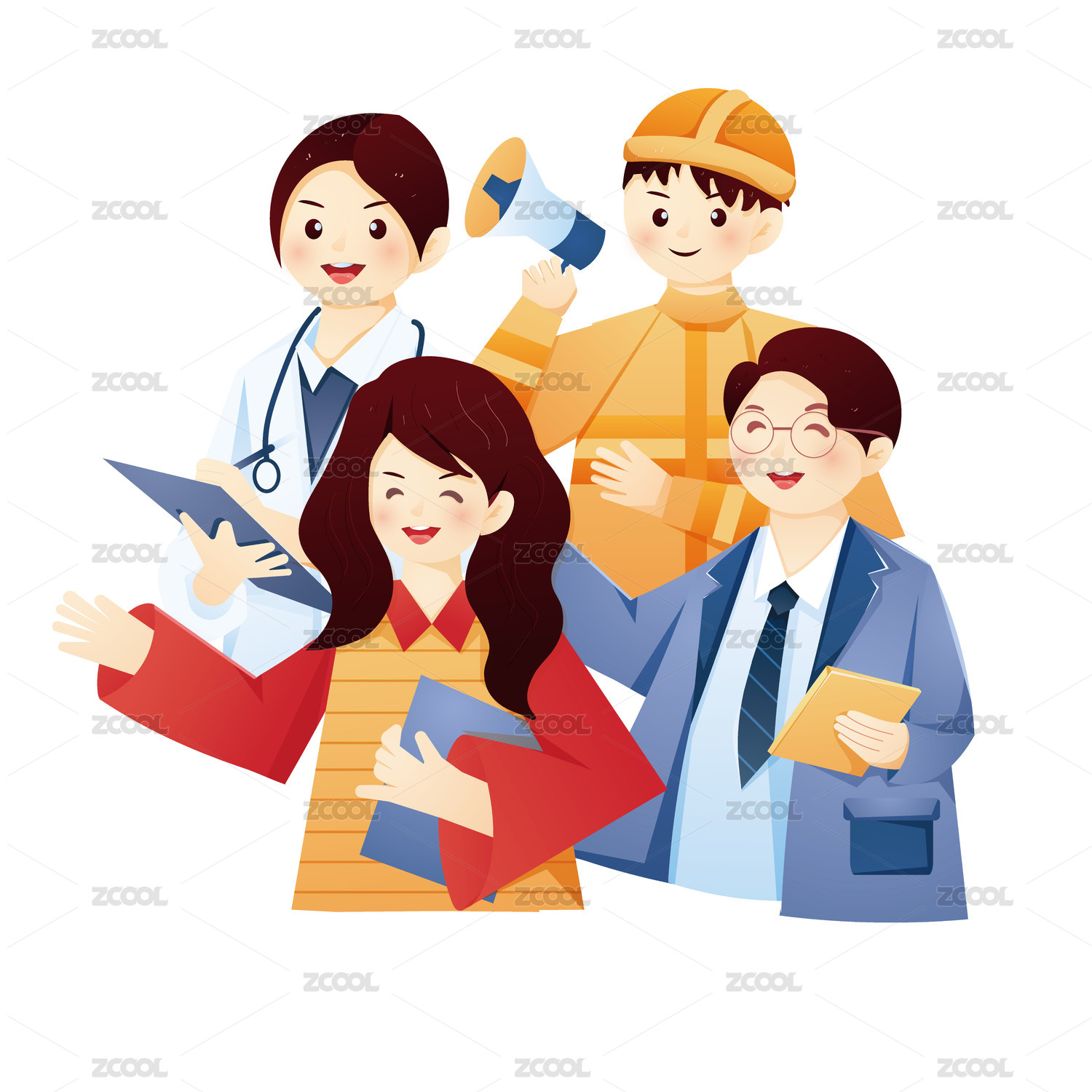手繪漸變勞動節(jié)不同職業(yè)人物插畫