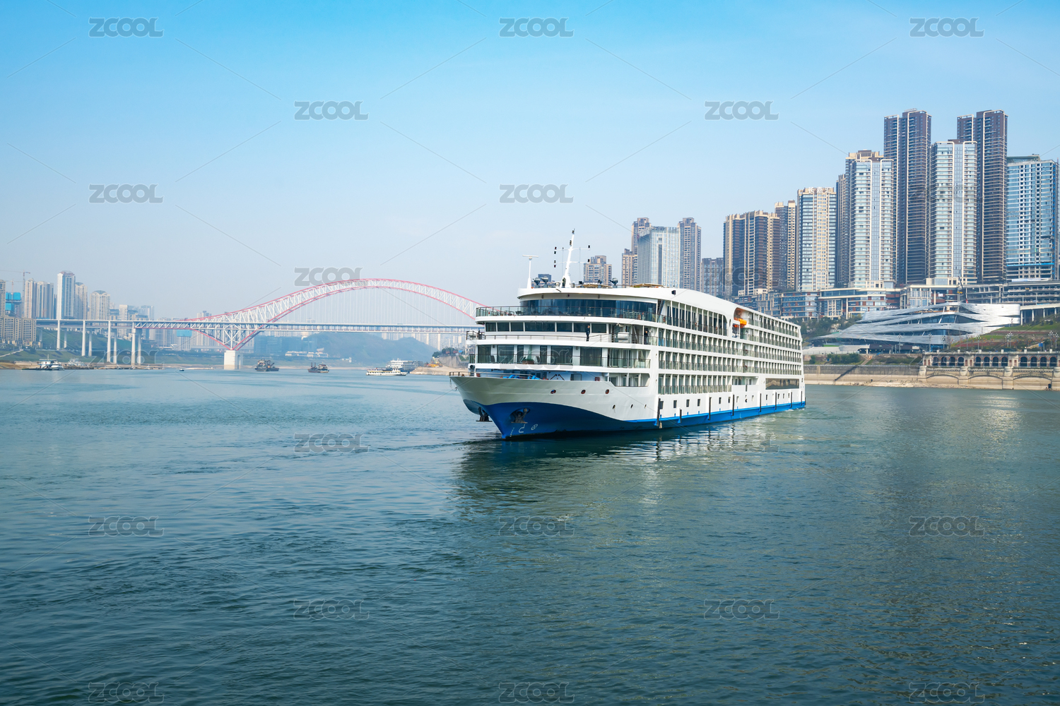 重慶長(zhǎng)江航道上航行的兩江游輪