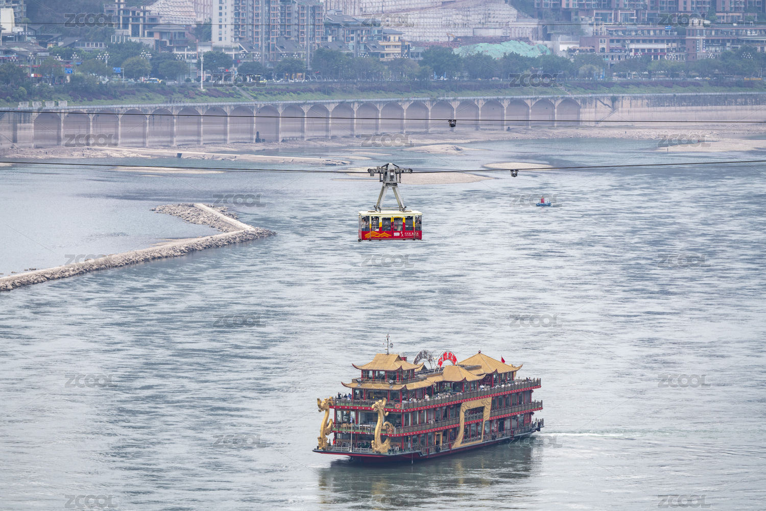 重慶長(zhǎng)江索道纜車與兩江游輪同框