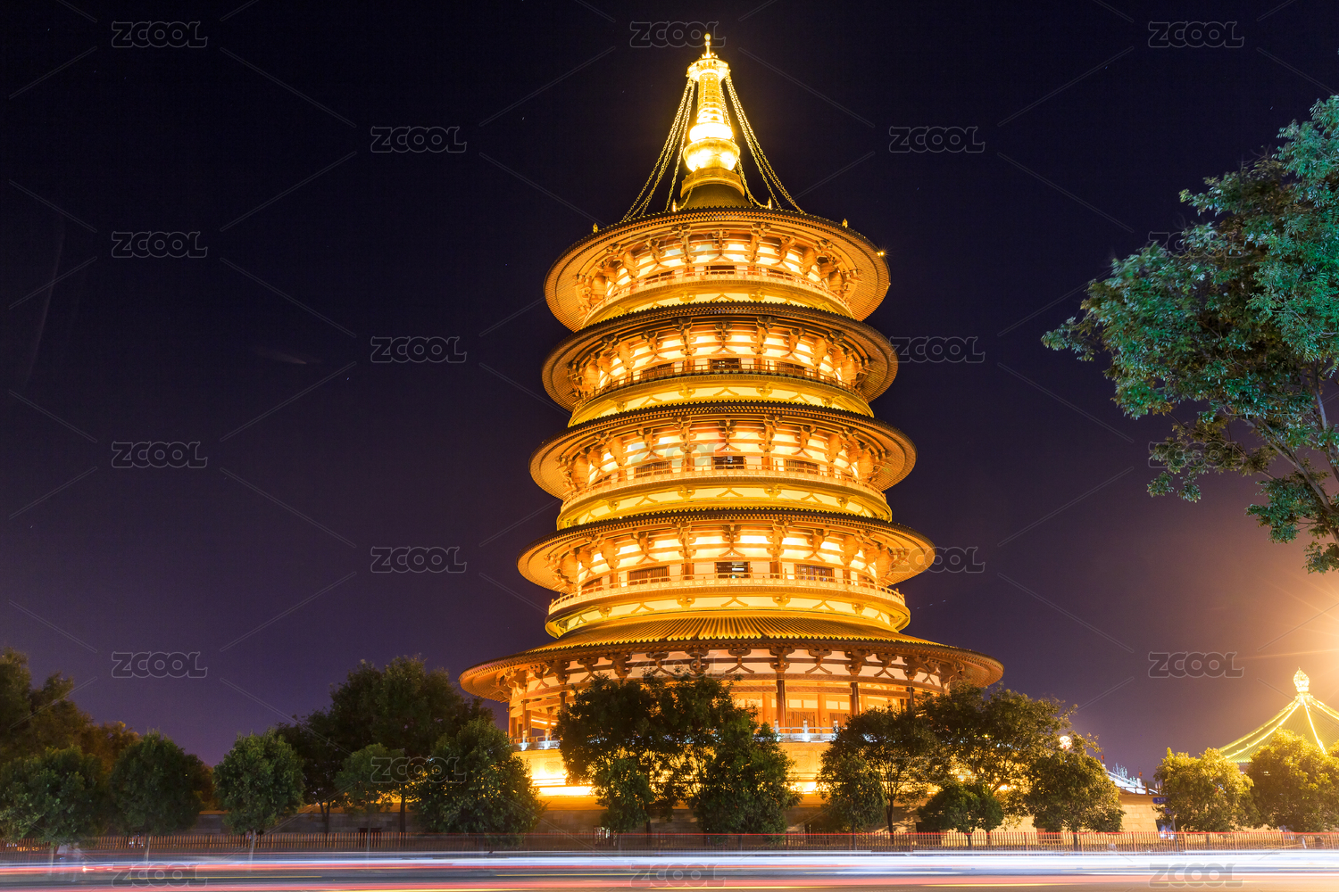 中國河南省隋唐洛陽城遺址天堂建筑夜色