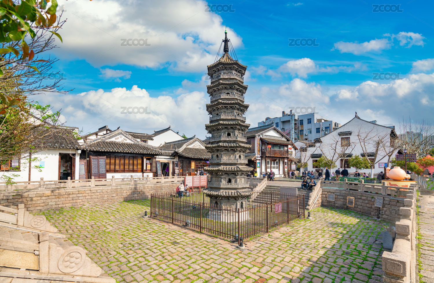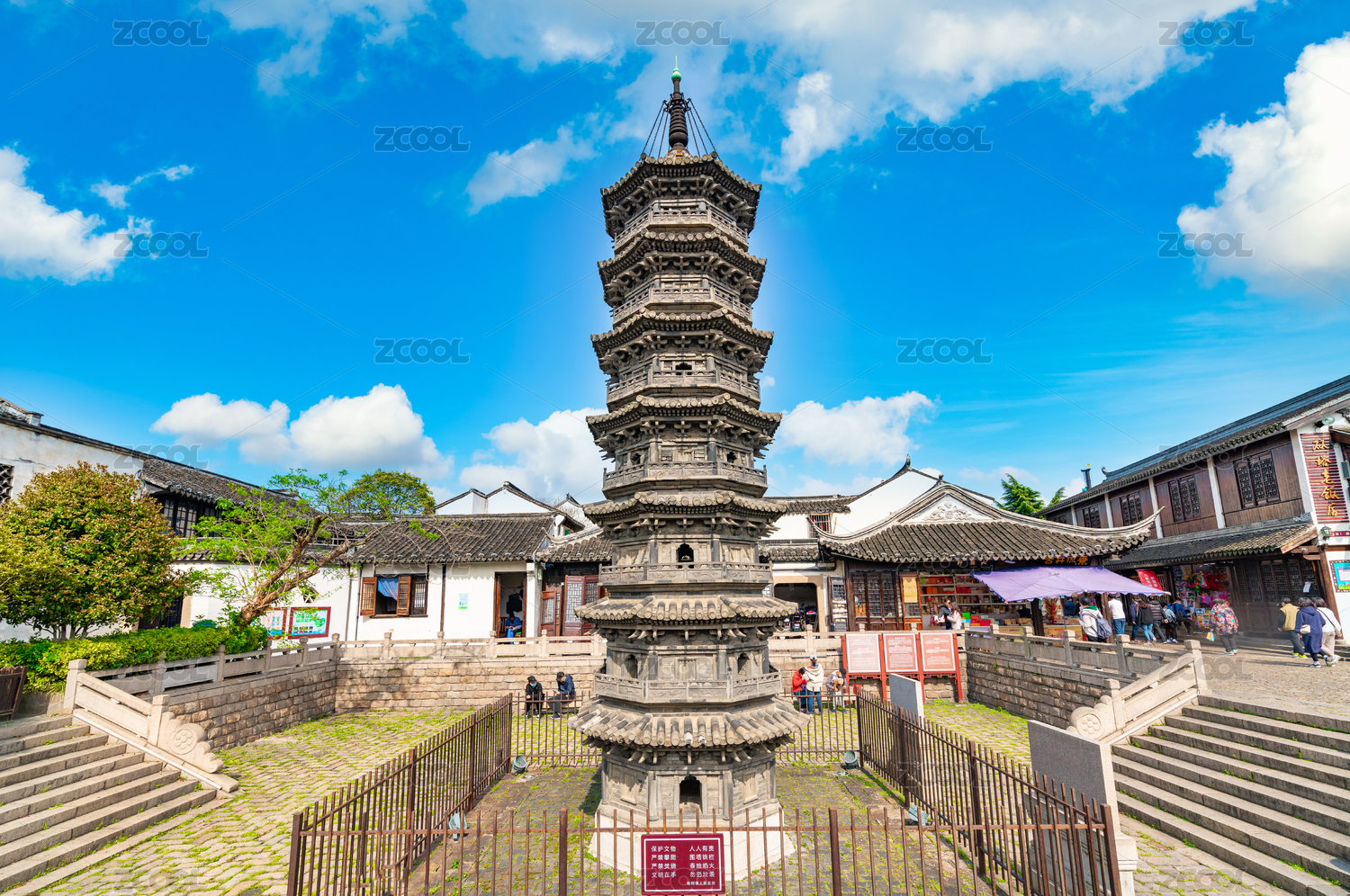 純凈藍天背景下的上海嘉定南翔老街南翔雙塔