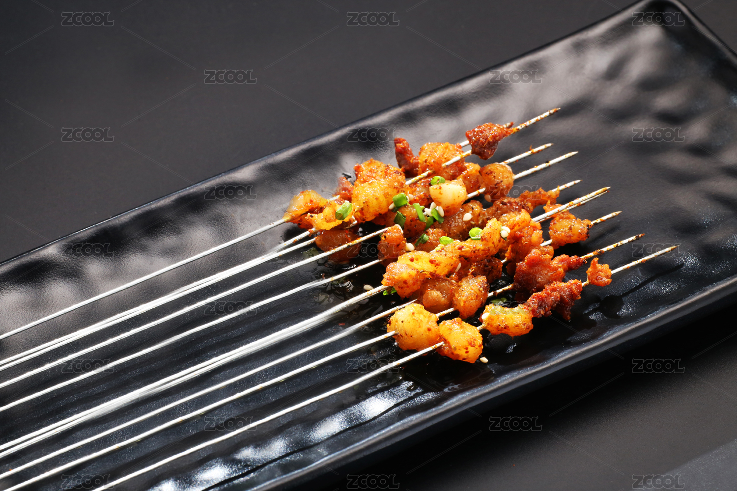 黑色盤子中的烤肉筋