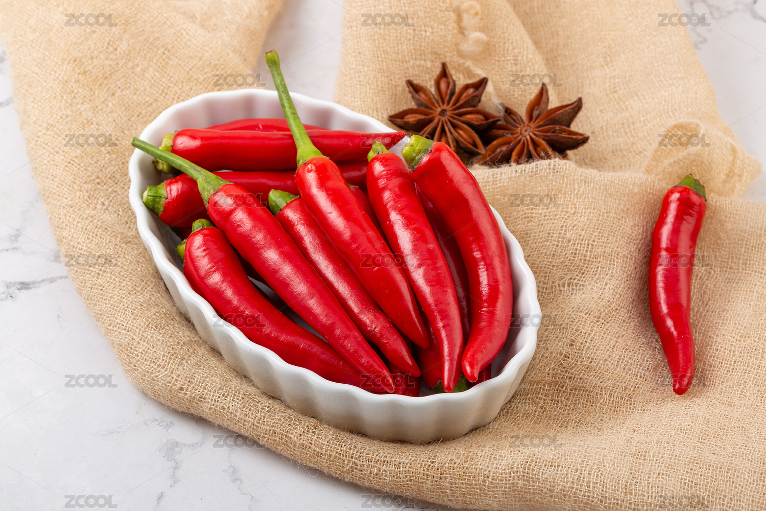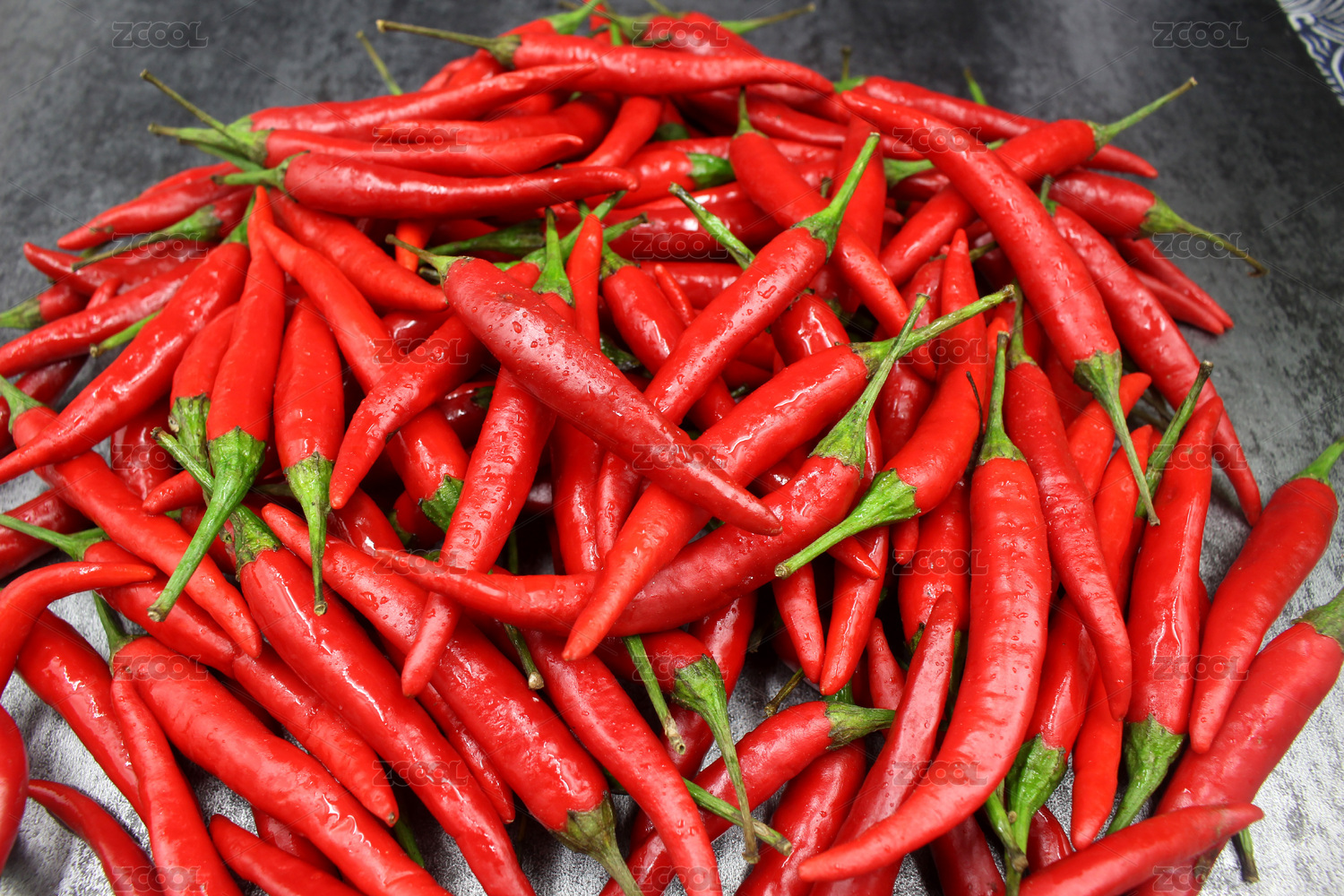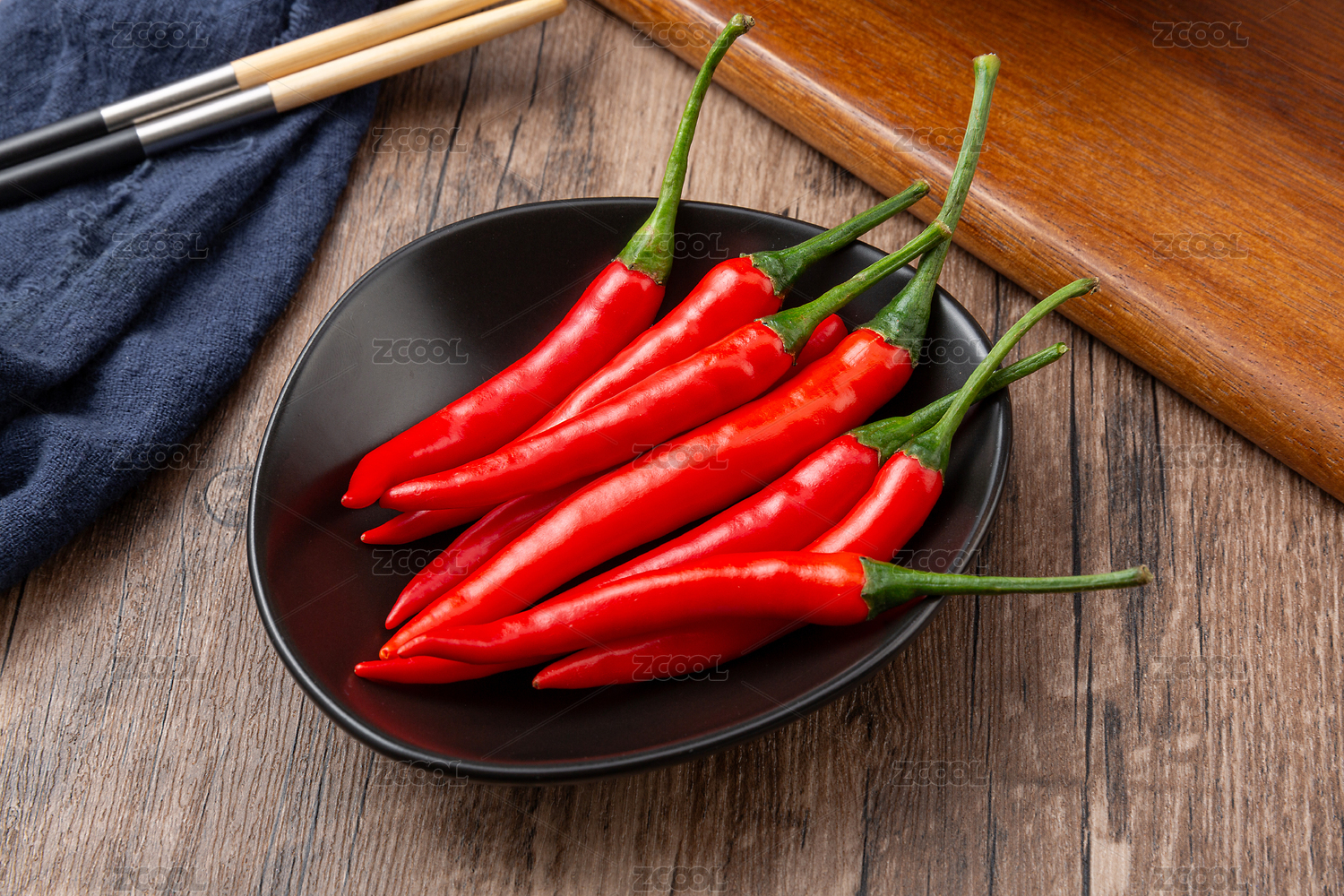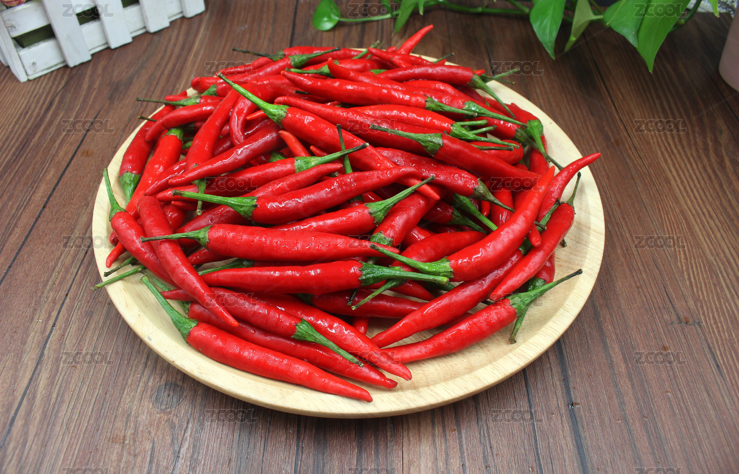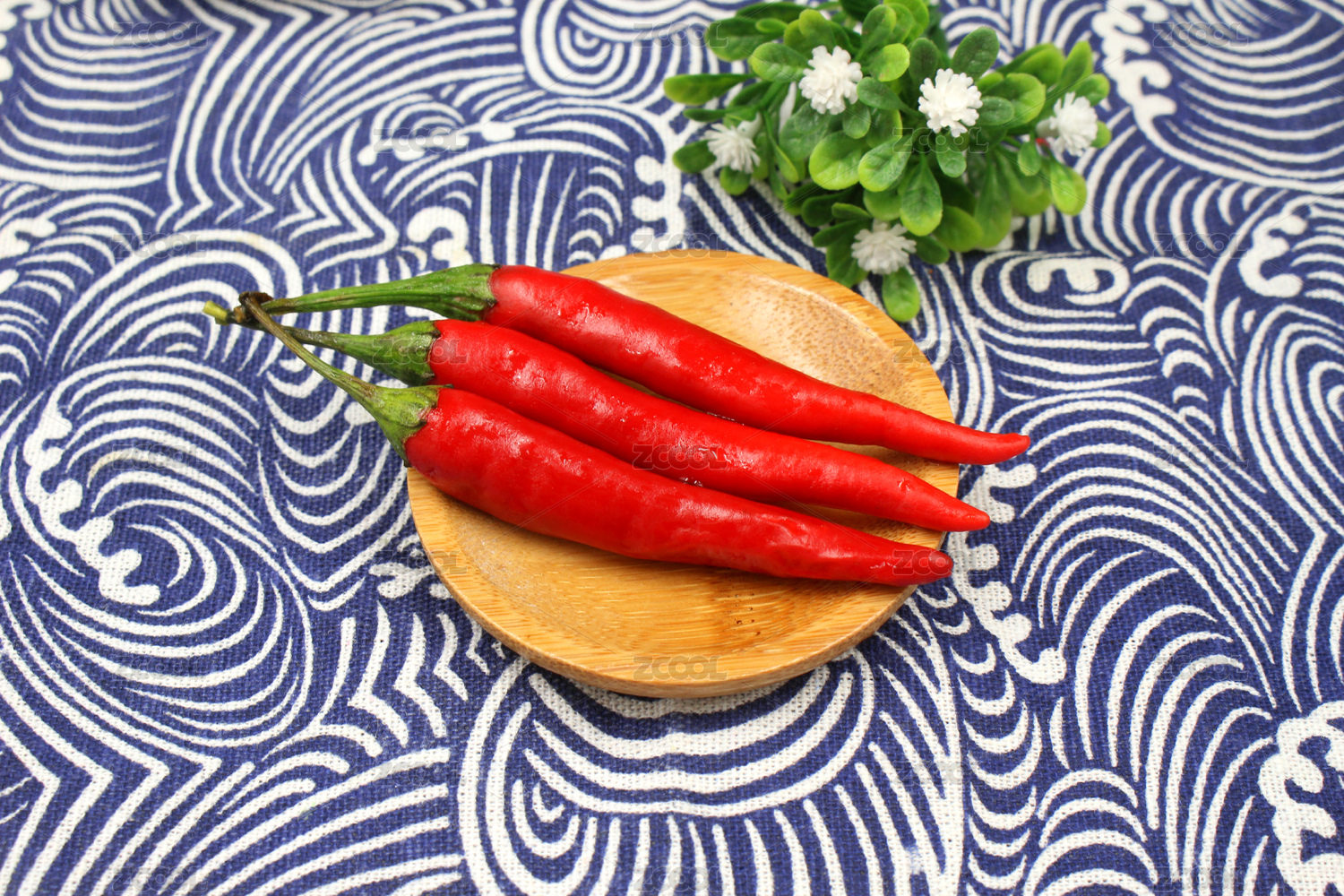 一堆新鮮小米椒和一盤切丁的紅辣椒