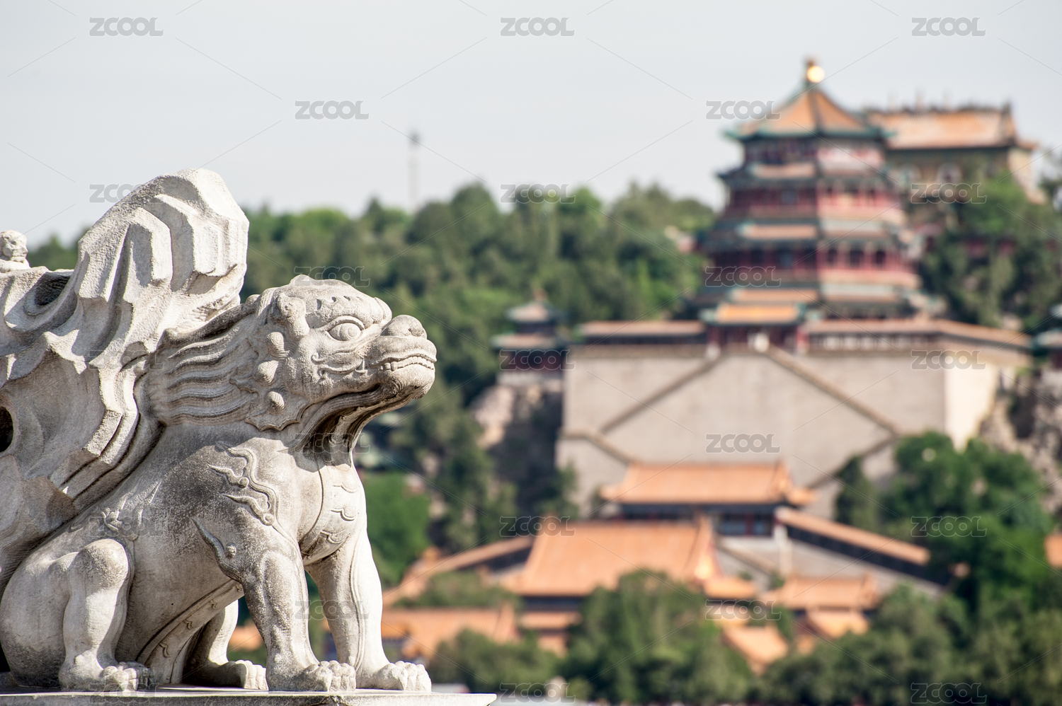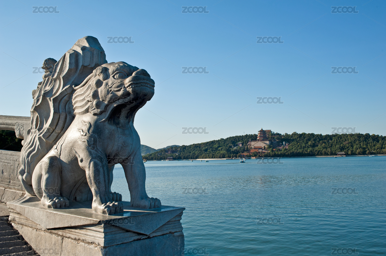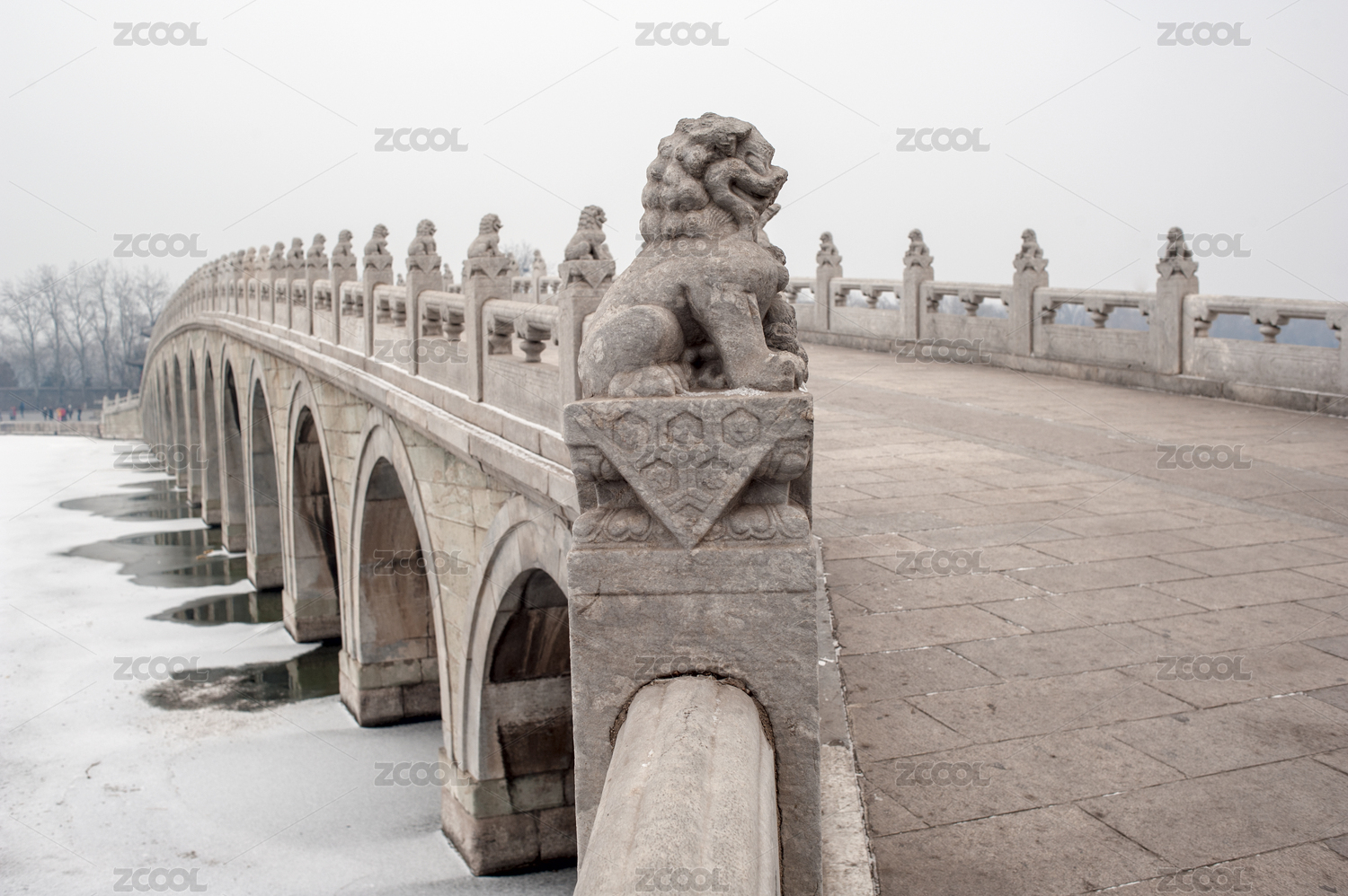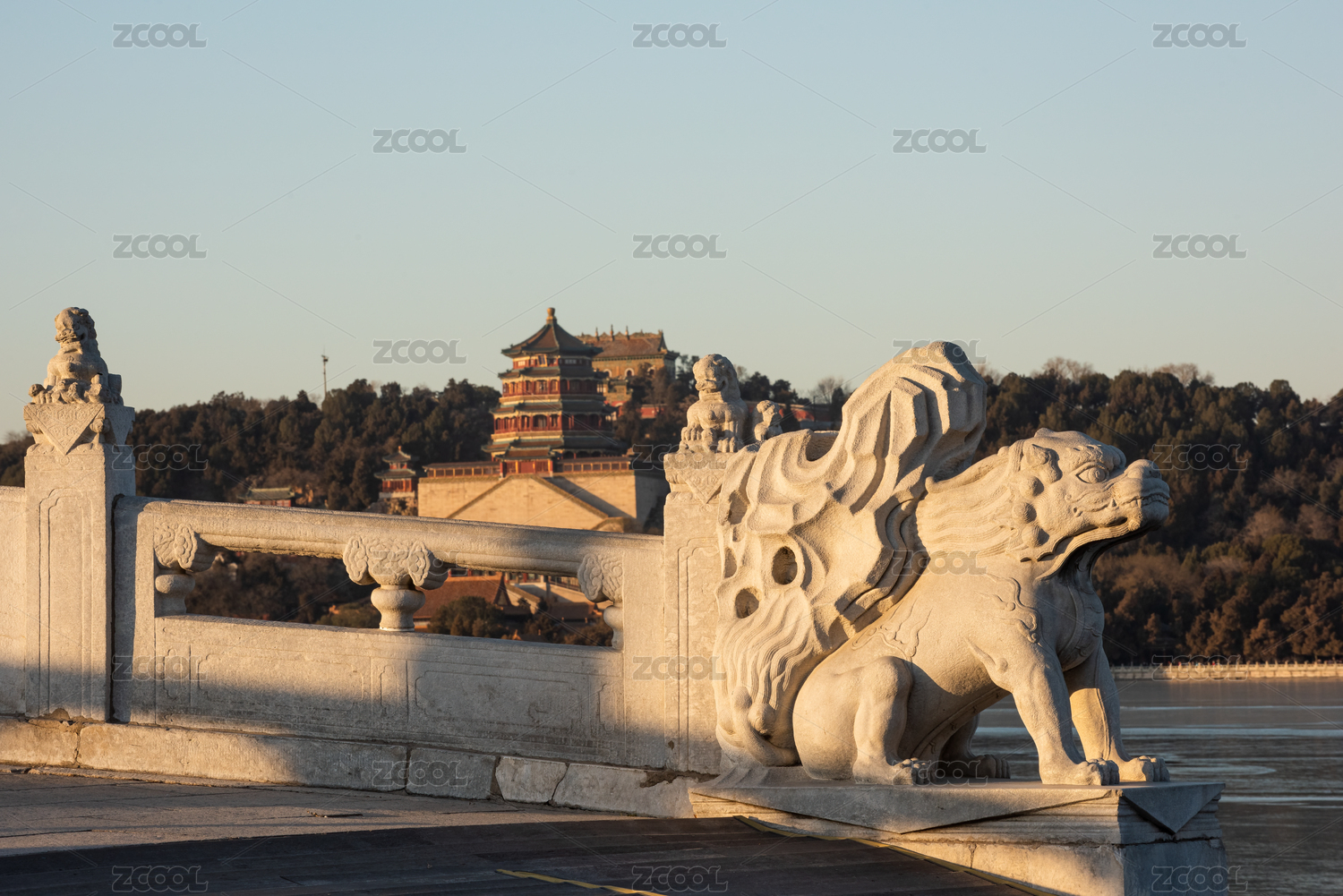 黃昏時刻的頤和園十七孔橋石朝天吼