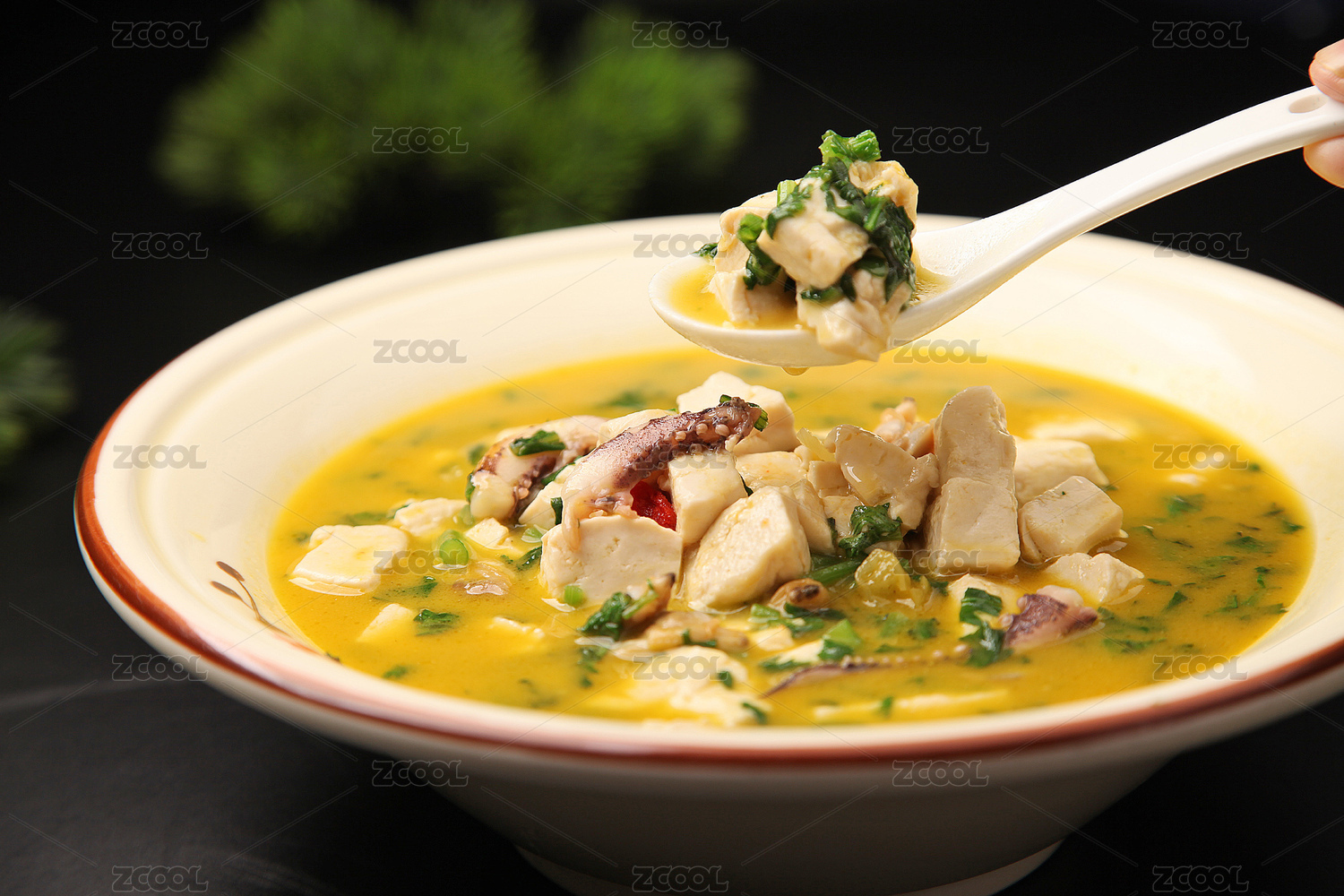 一道美味的中國菜,蝦仁海鮮燜雞蛋豆腐煲