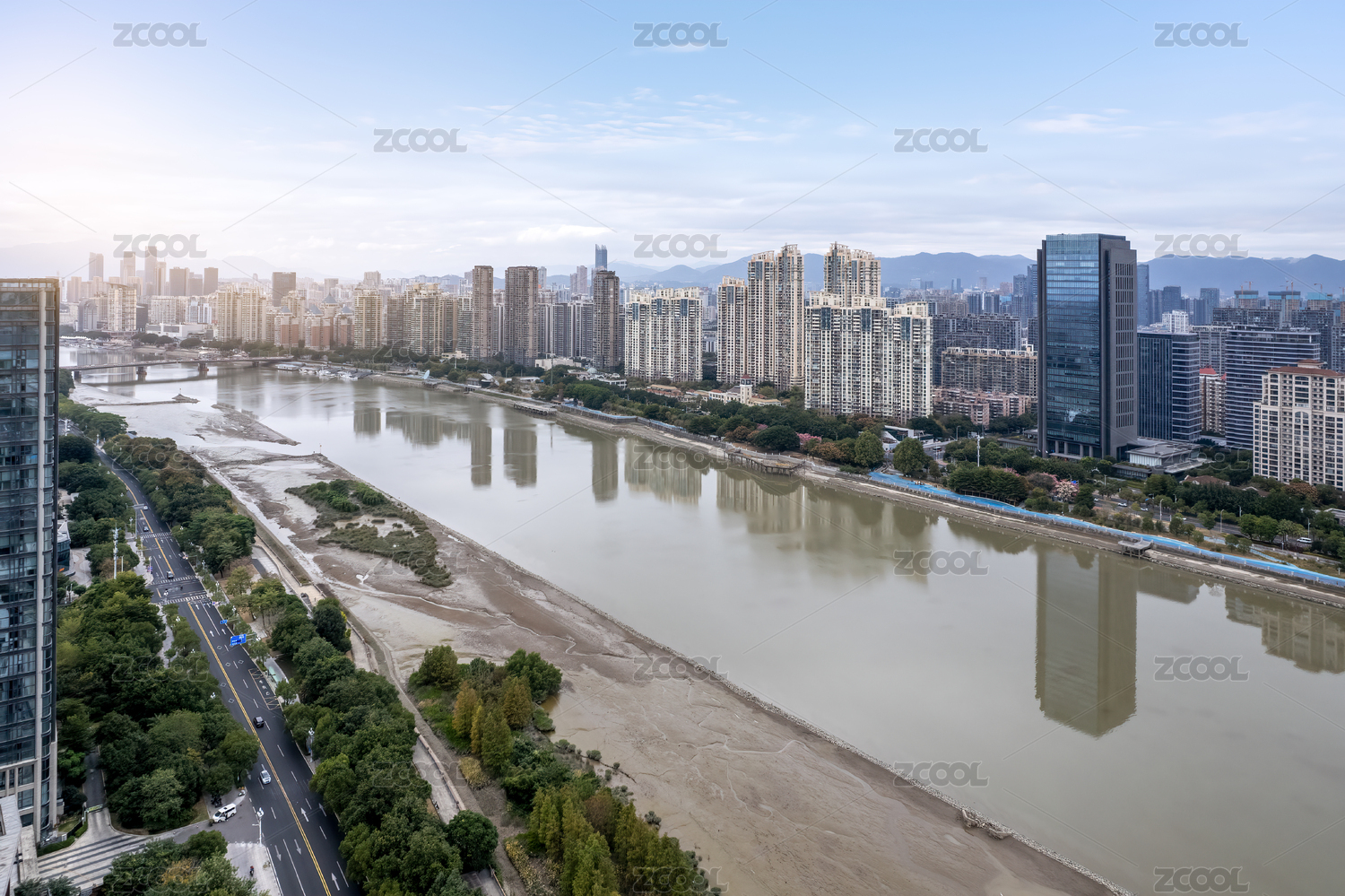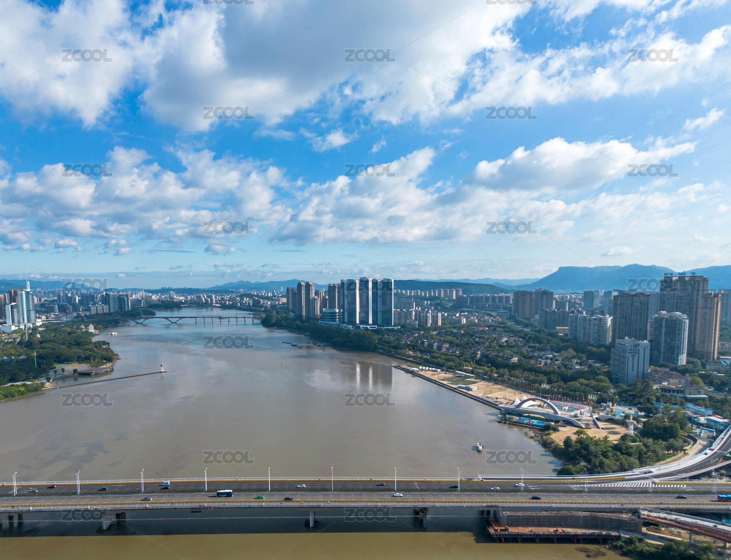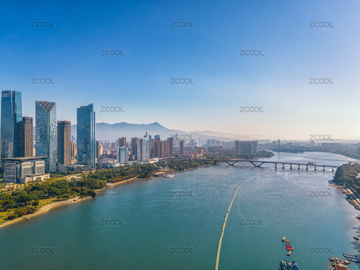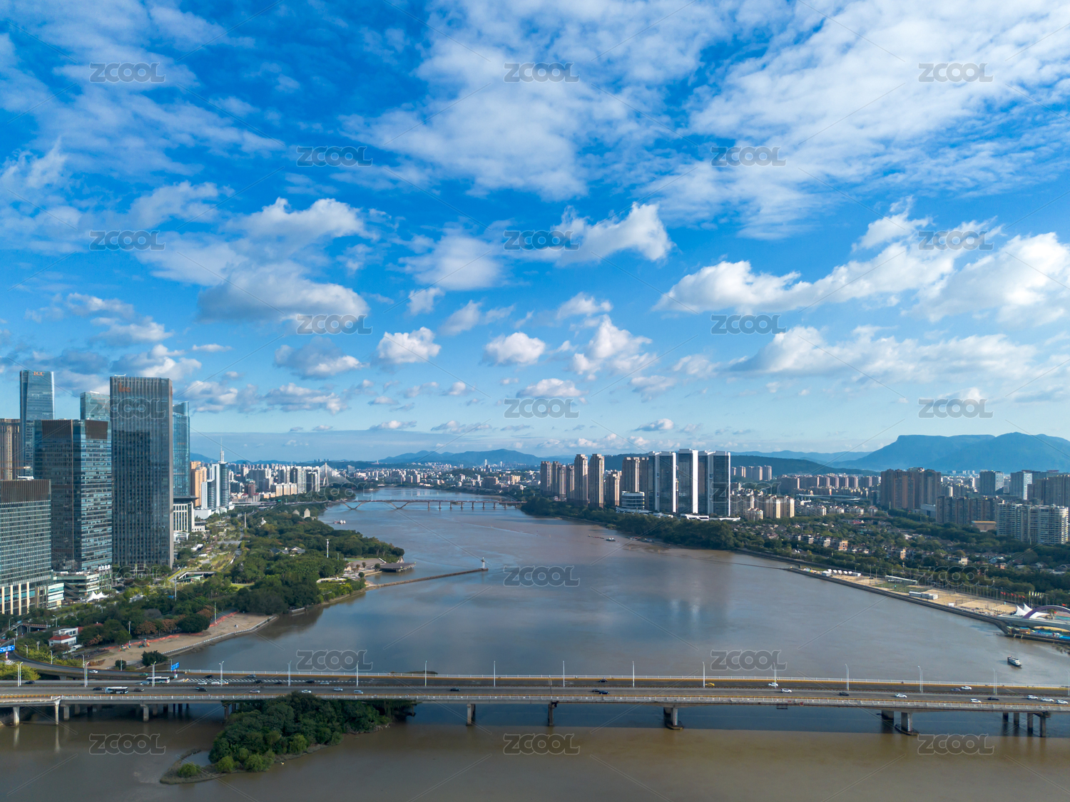 航拍福州市閩江兩岸城市建筑群風(fēng)貌