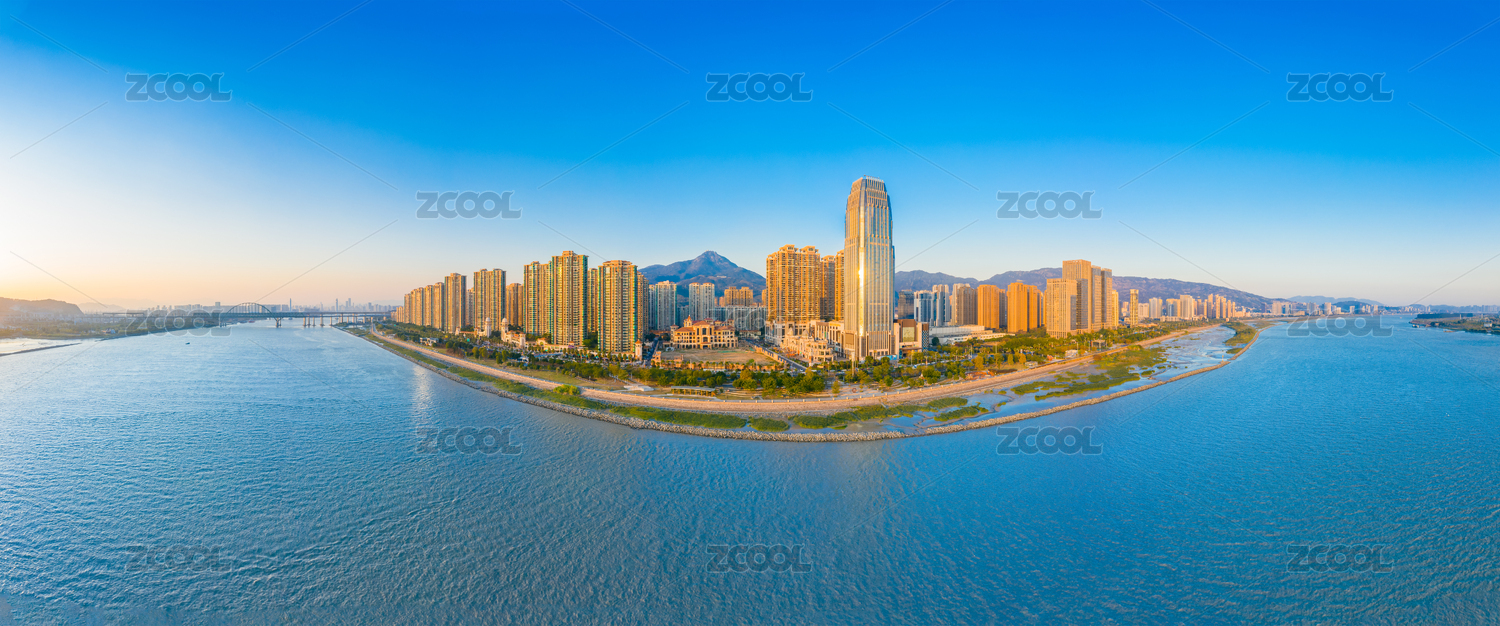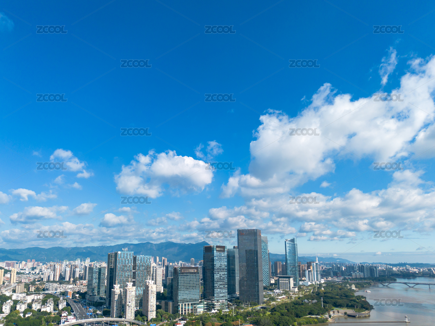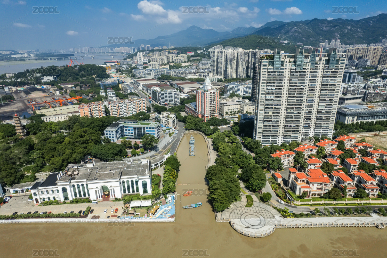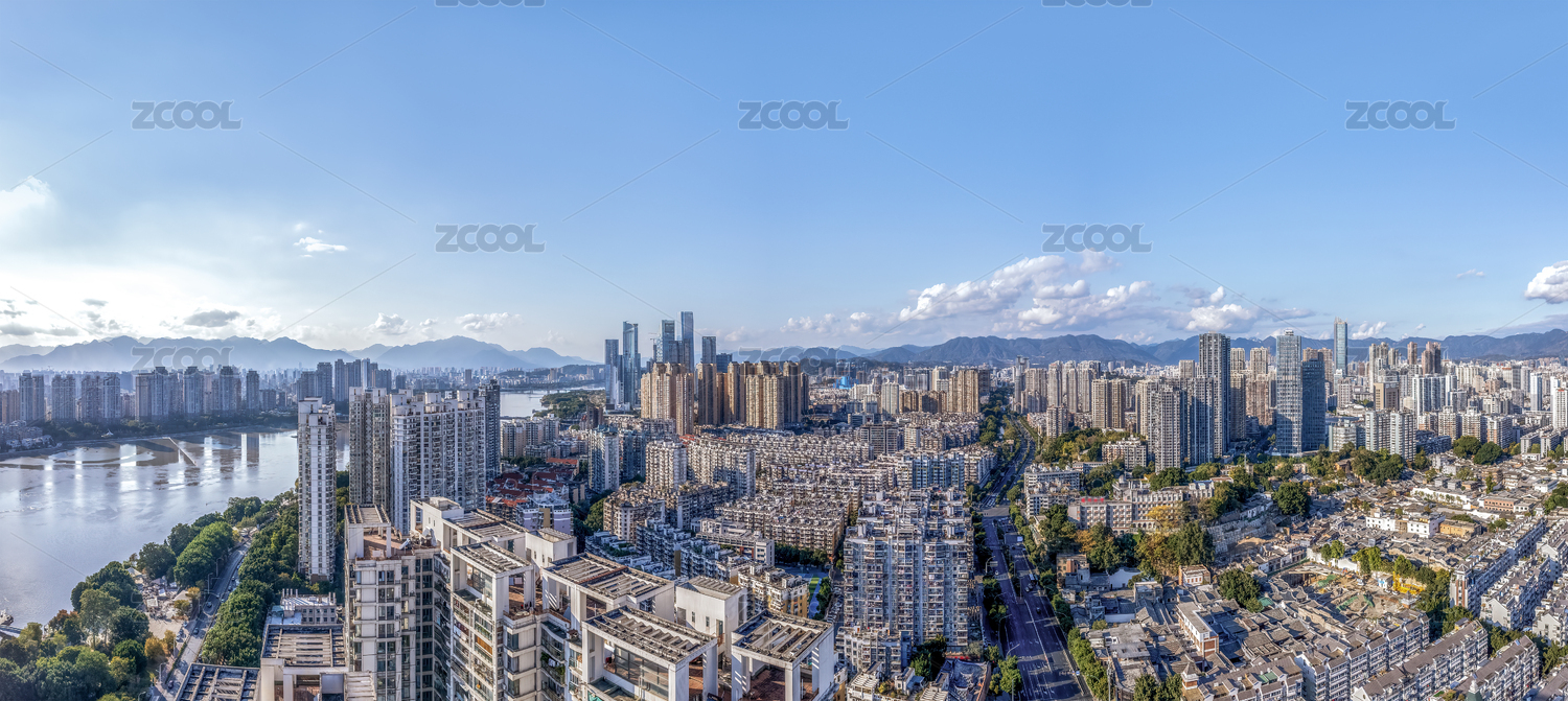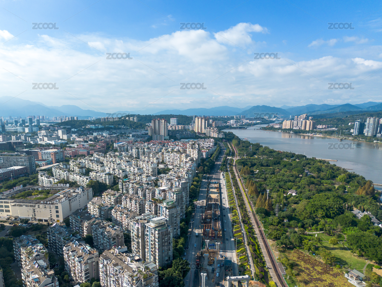 航拍福州市閩江兩岸城市建筑群風(fēng)貌