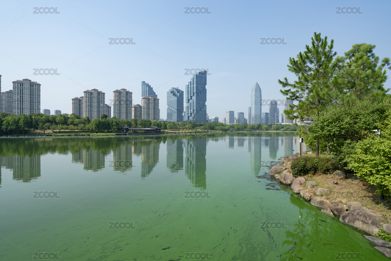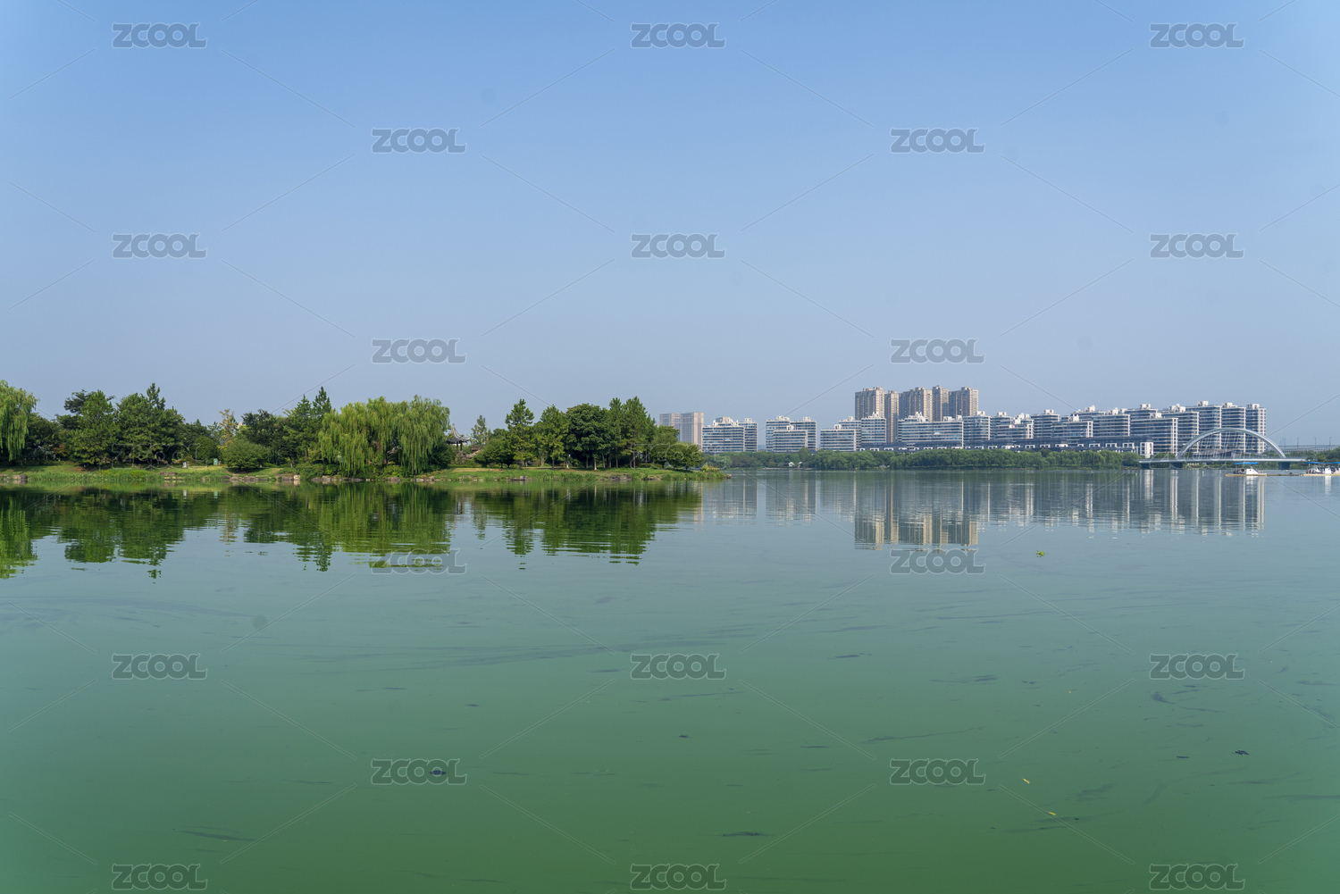 紹興迪蕩湖公園湖景與對岸的高檔住宅區(qū)