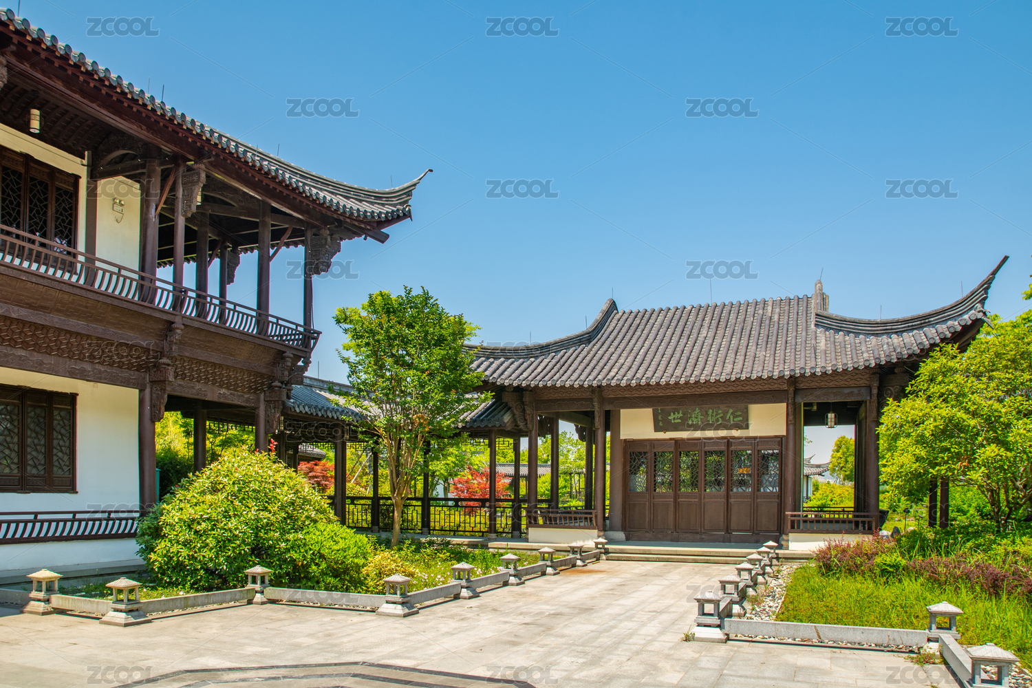 浙江紹興迪蕩湖公園的仿古建筑