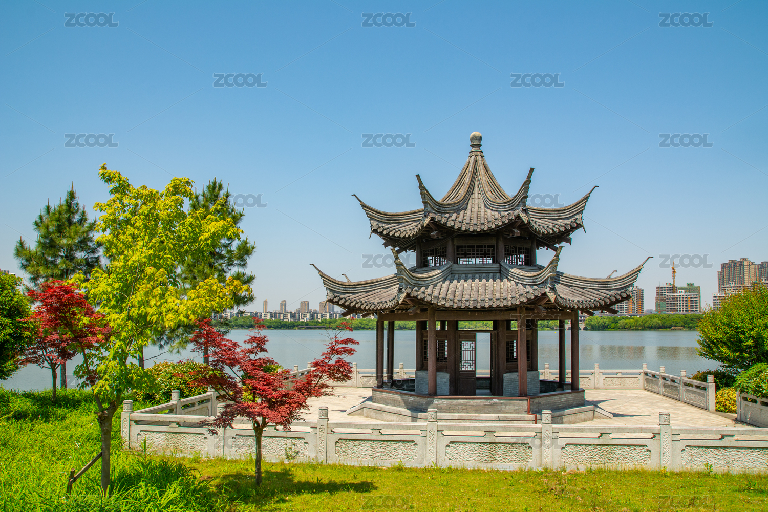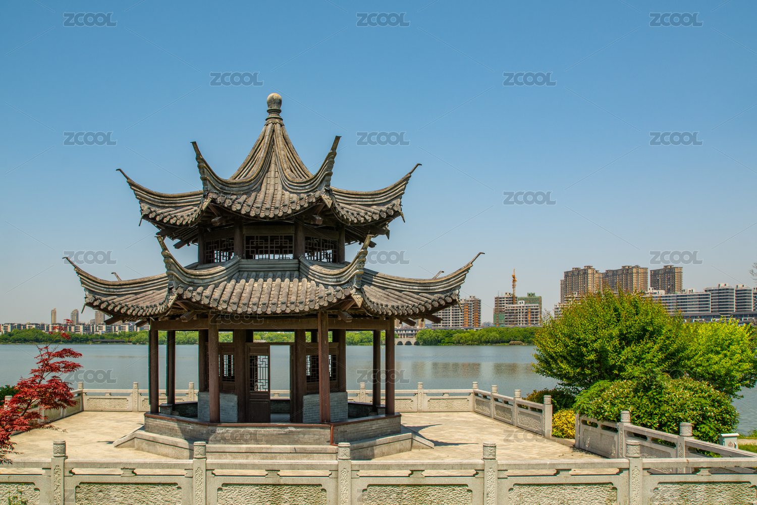 浙江紹興迪蕩湖公園文心島中式園林建筑
