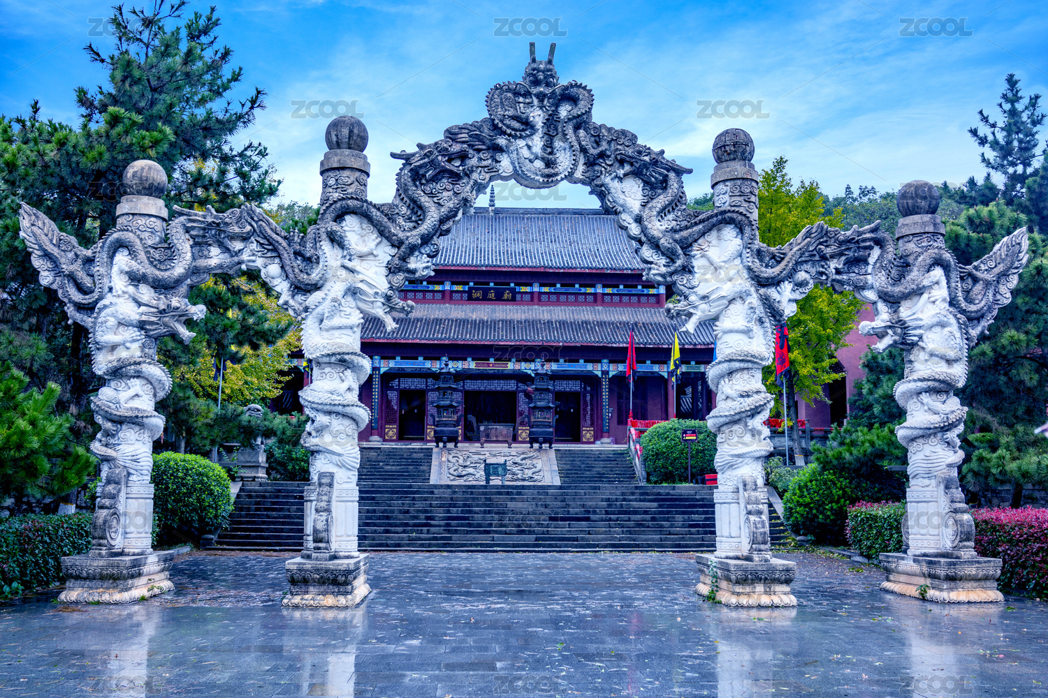 湖南岳陽(yáng)君山島洞庭廟九龍引柱牌樓