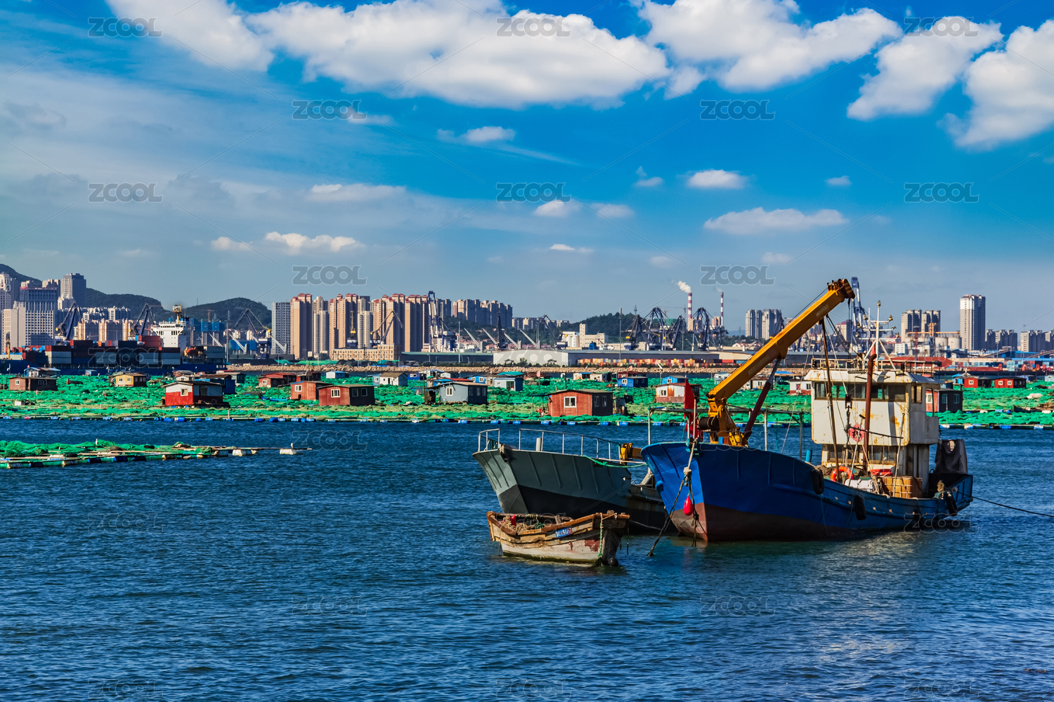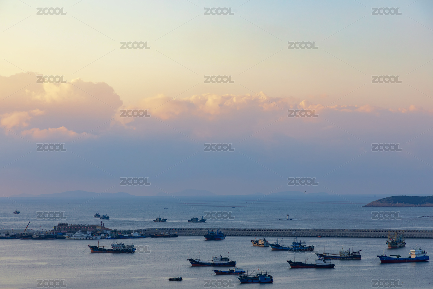 日出福建寧德霞浦海邊漁船進出三沙海港