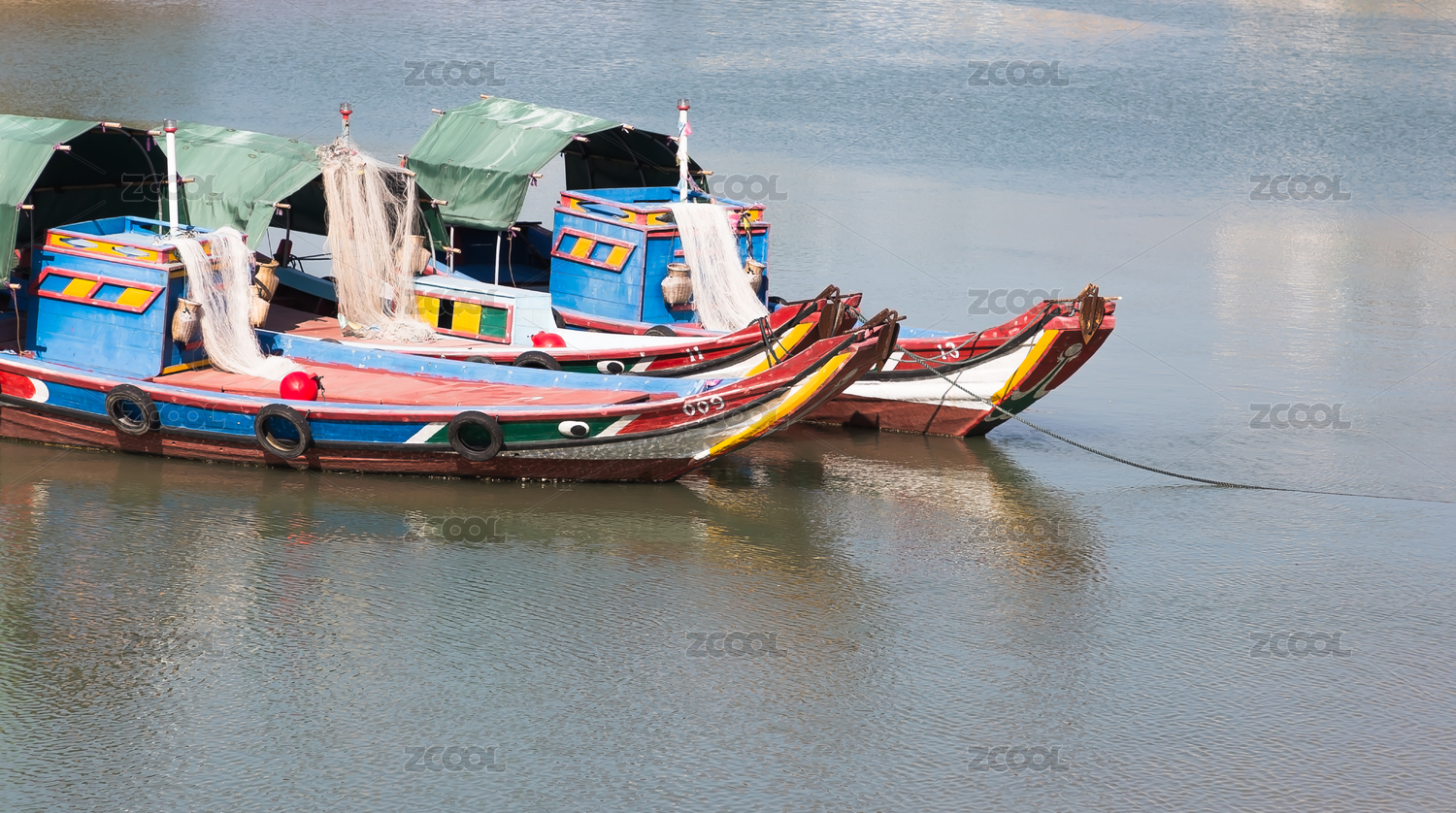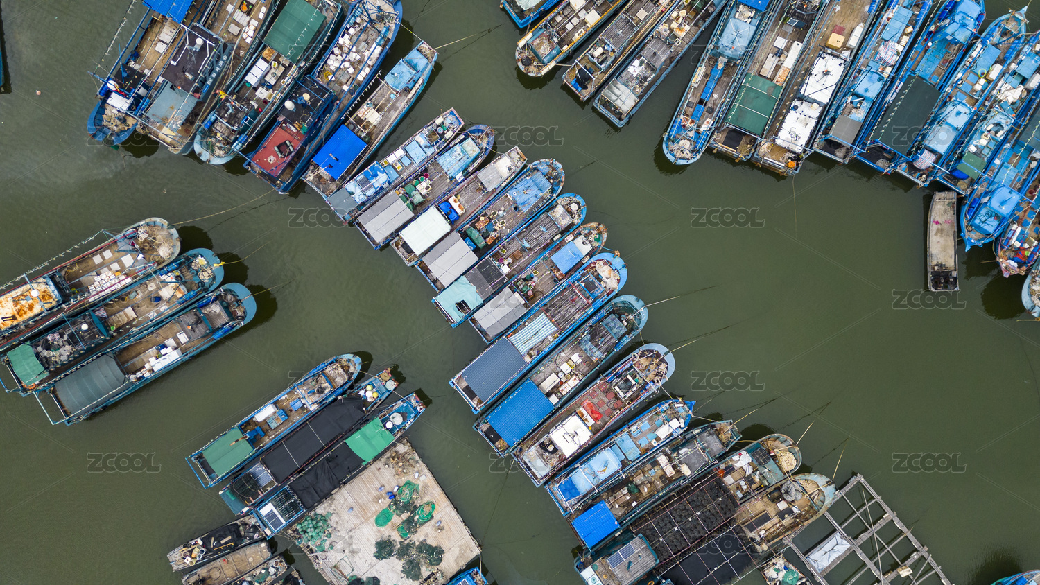 日出福建霞浦三沙鎮(zhèn)海灣港口停靠的漁船