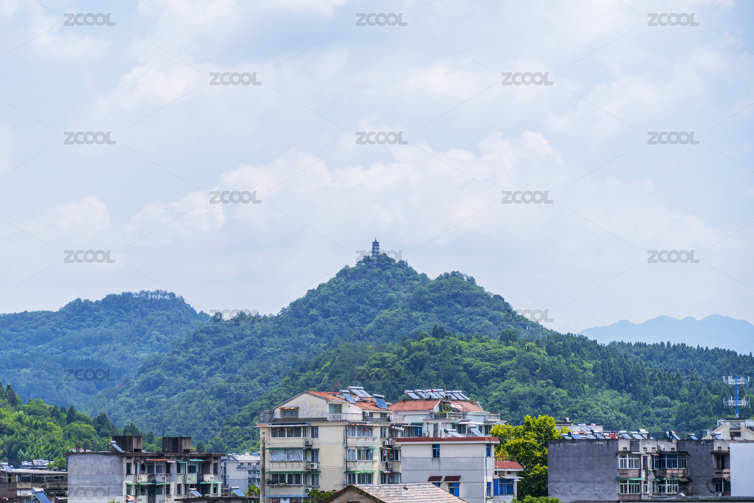 遠(yuǎn)眺浙江省建德市嚴(yán)州古城的北峰塔