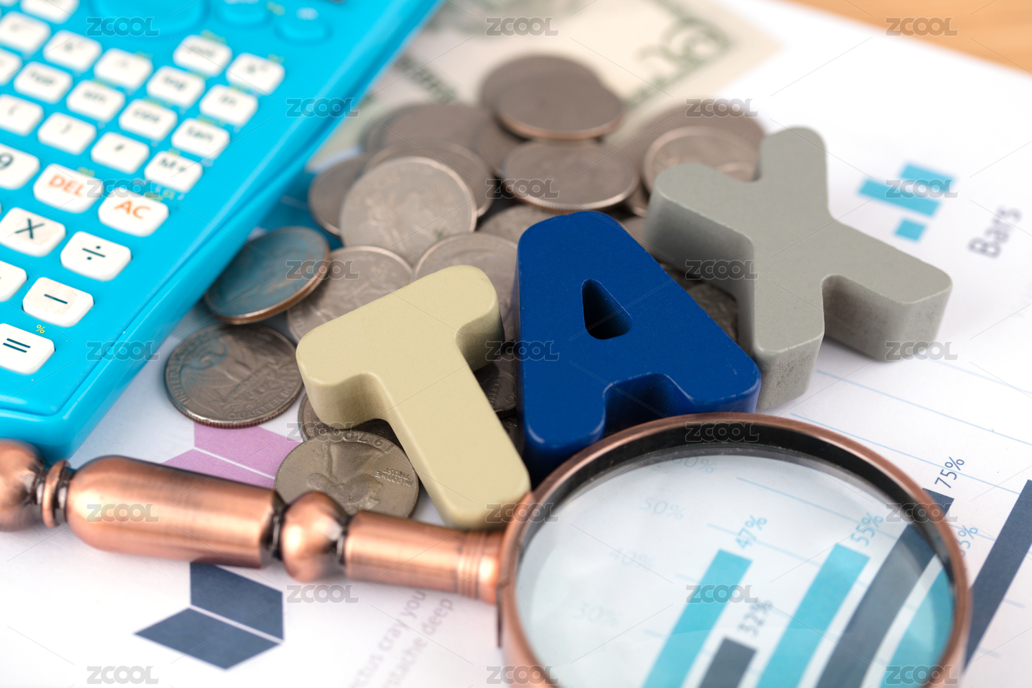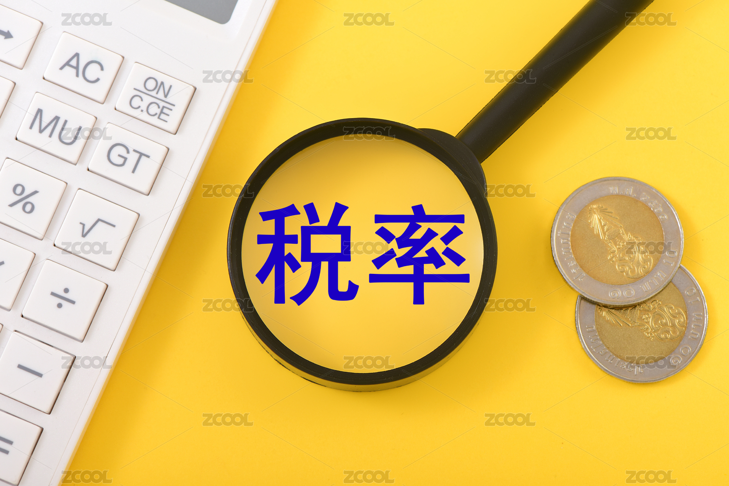 金融辦公用品上的放大鏡印著文字稅率
