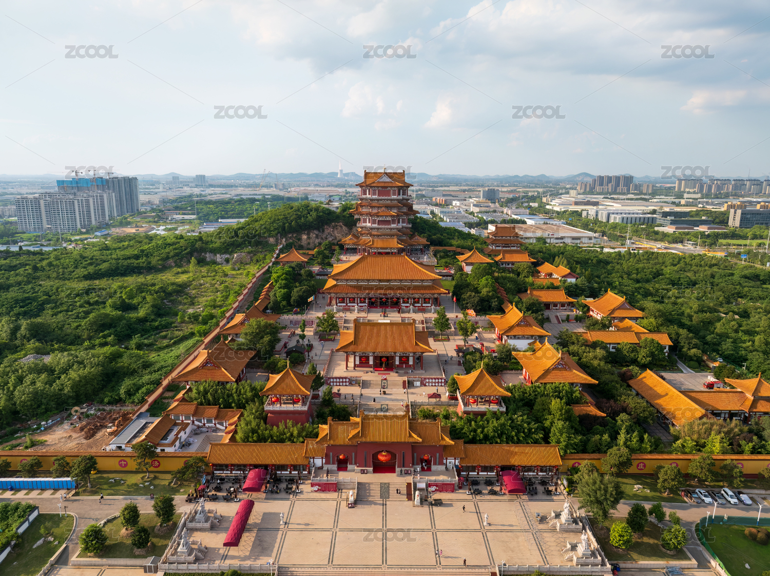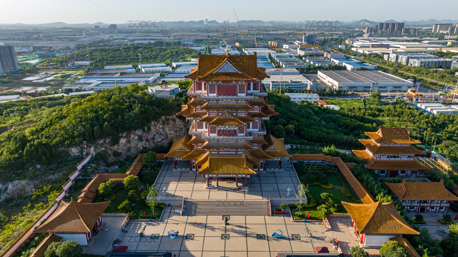 夏季白天航拍江蘇徐州寶蓮寺全景