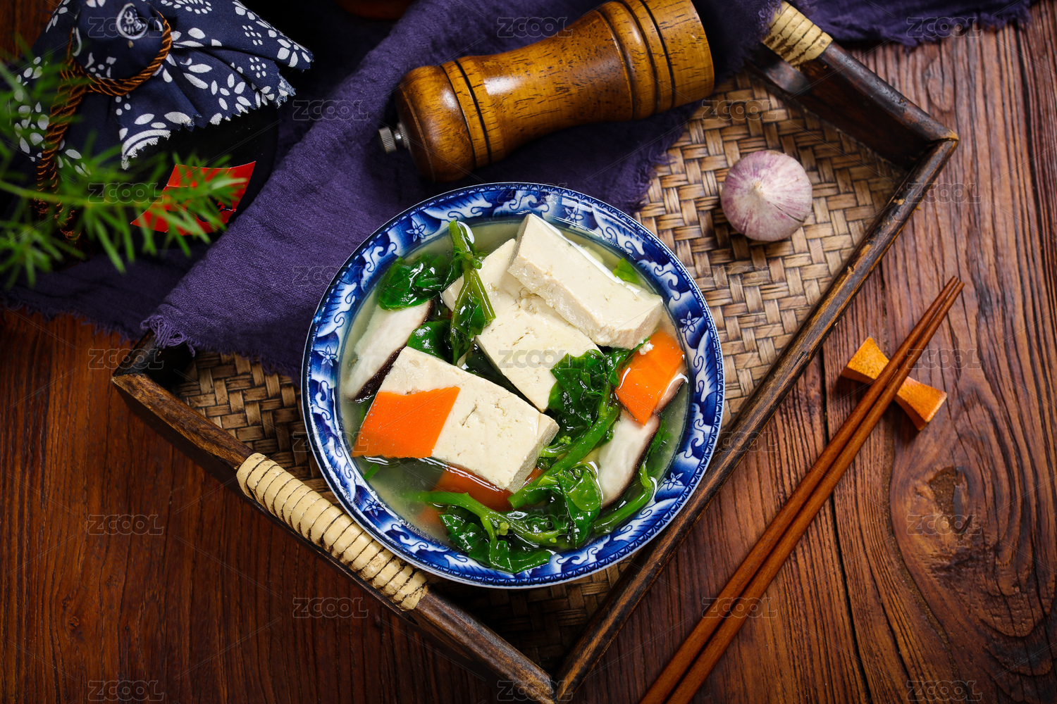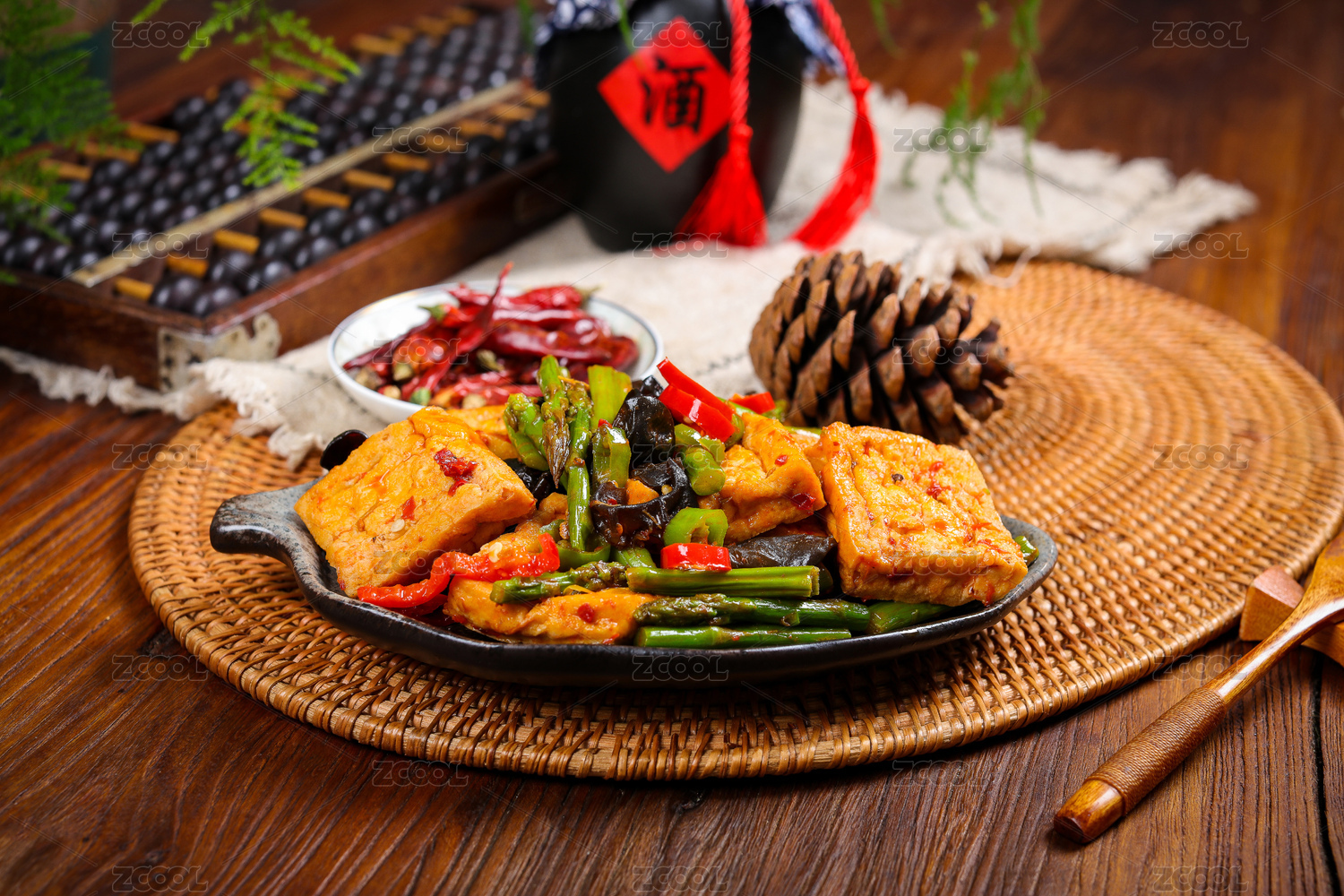 一盤白菜木耳爆豆腐特寫深色調(diào)