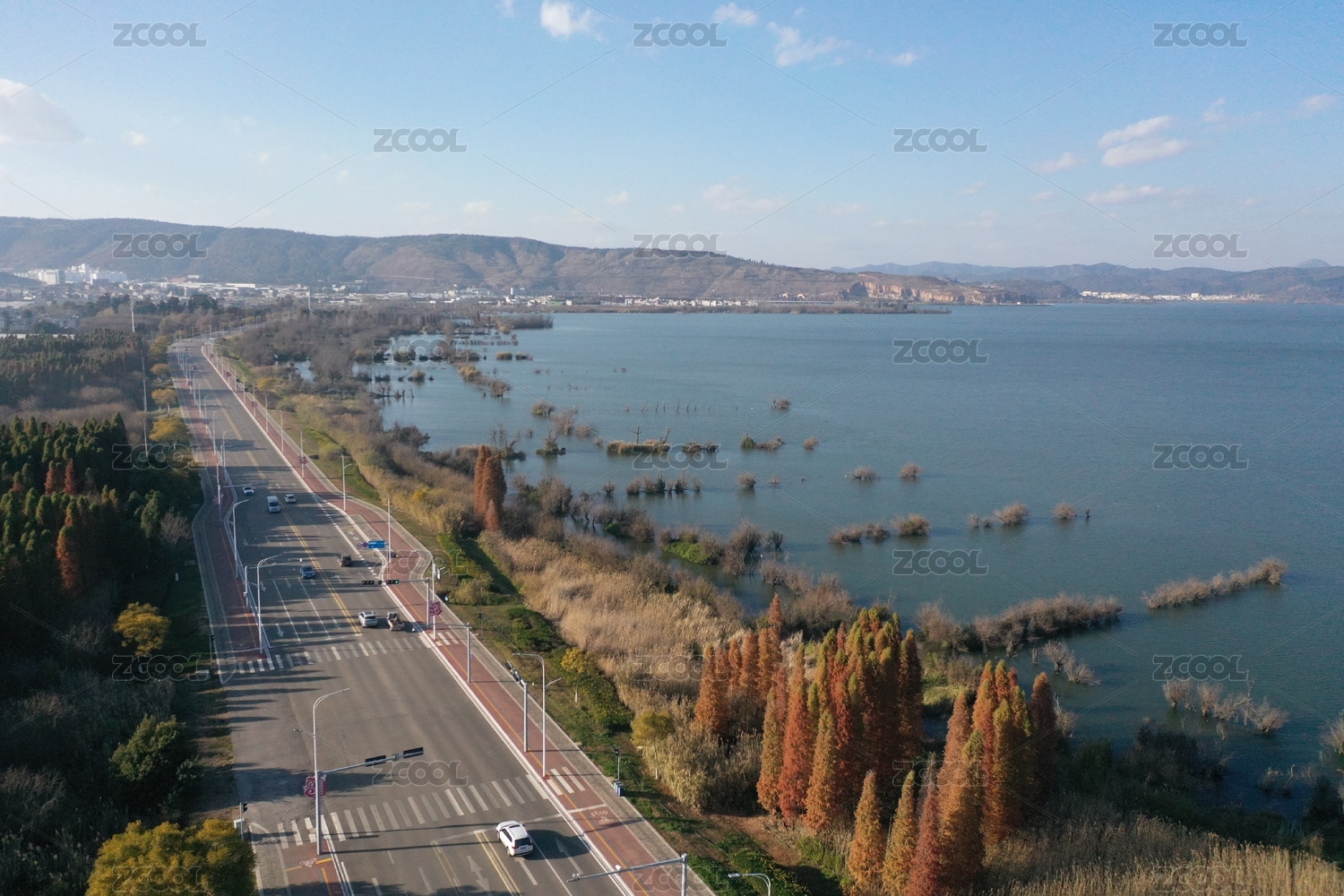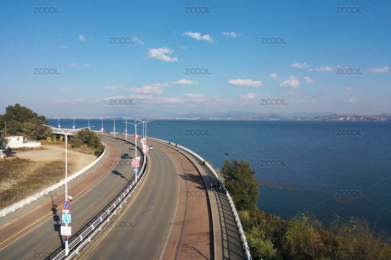 航拍云南昆明滇池最美公路風(fēng)光