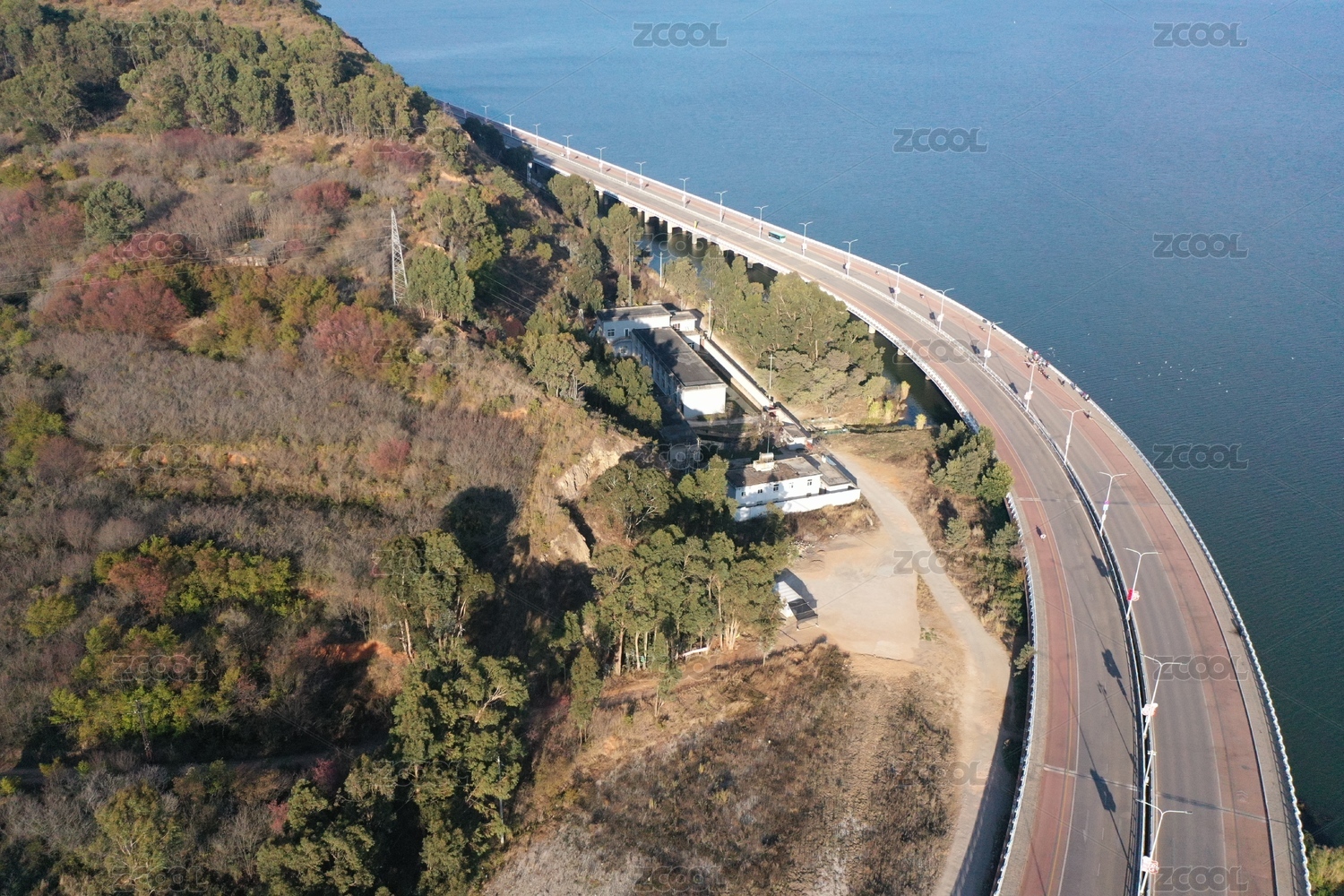 航拍云南昆明最美水上公路風(fēng)光
