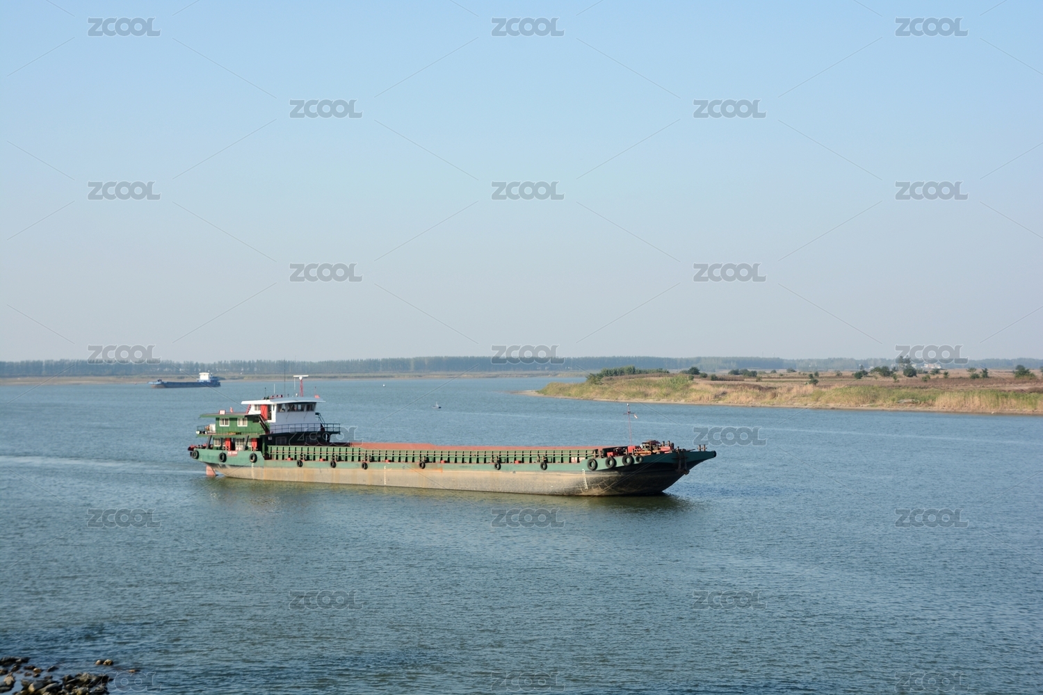 江中行駛的貨船