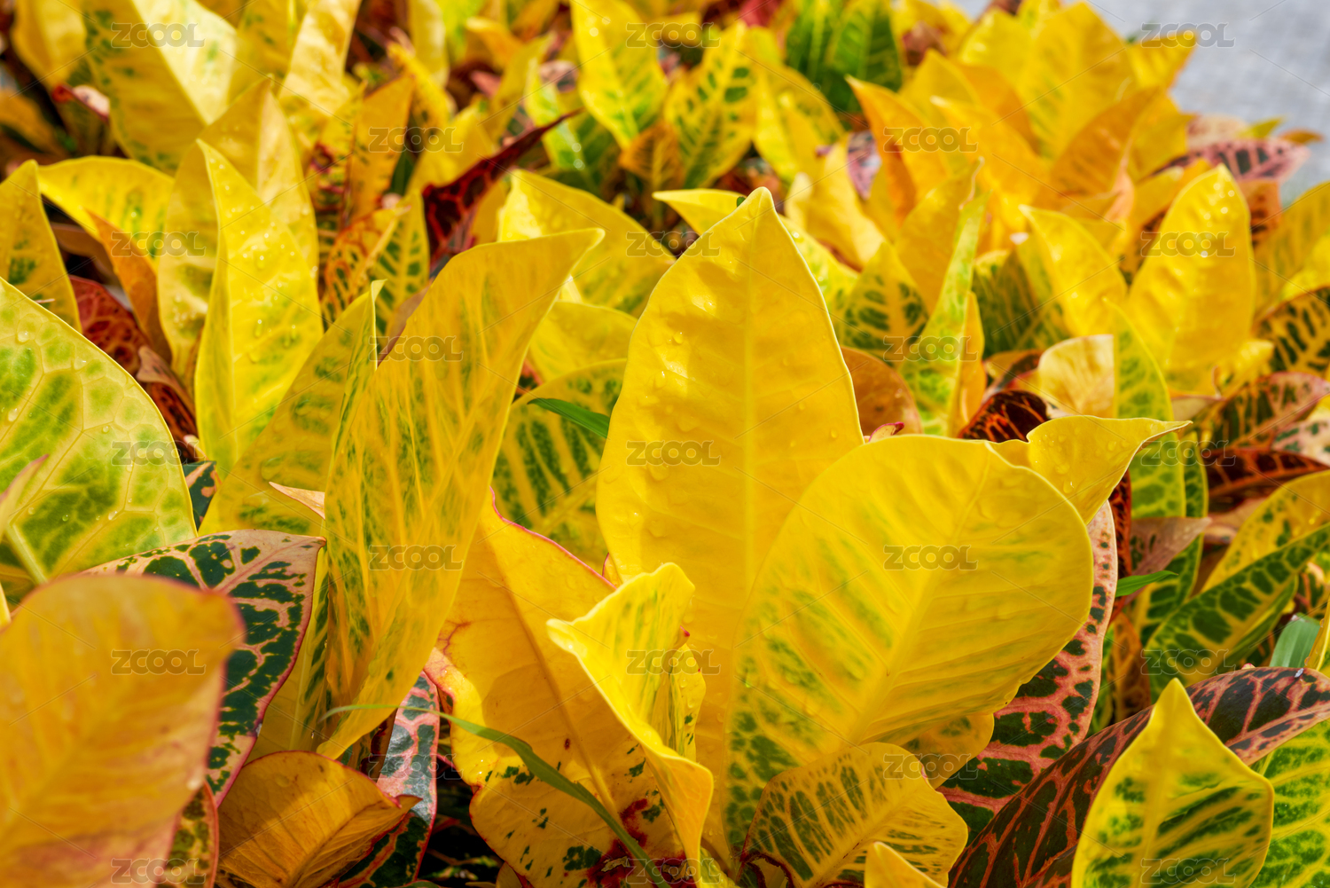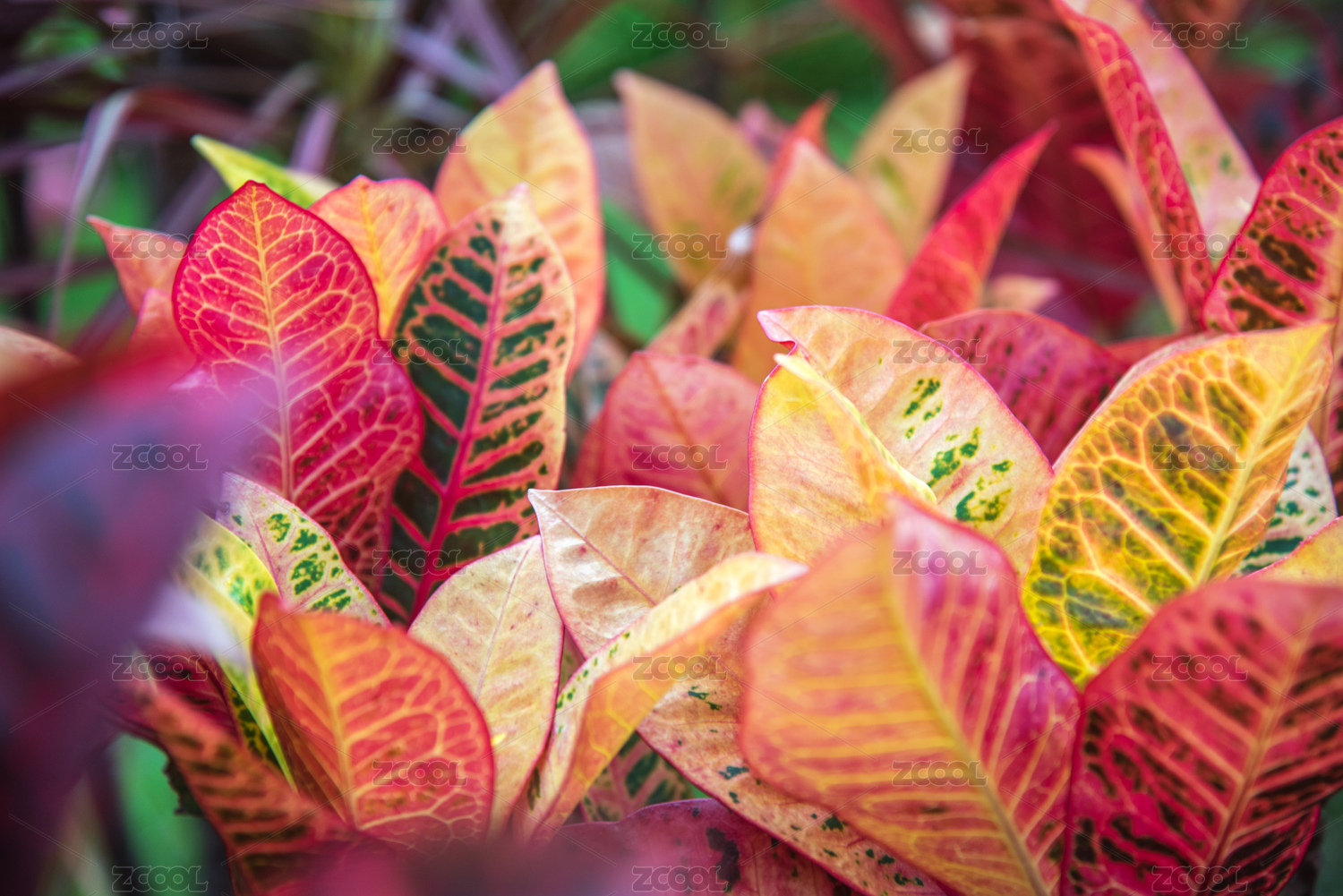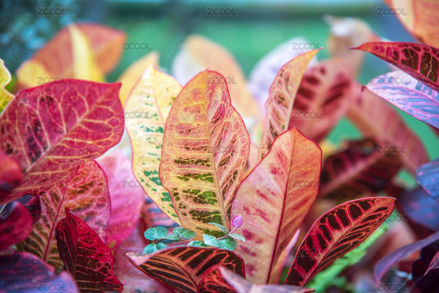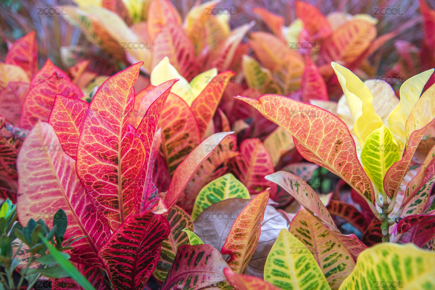 陽光下色彩斑斕的變?nèi)~木植物圖片