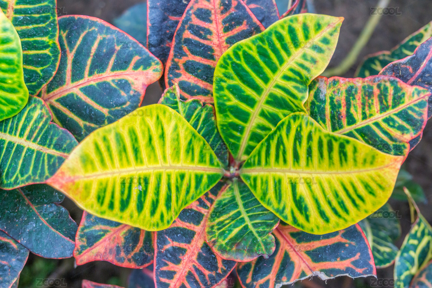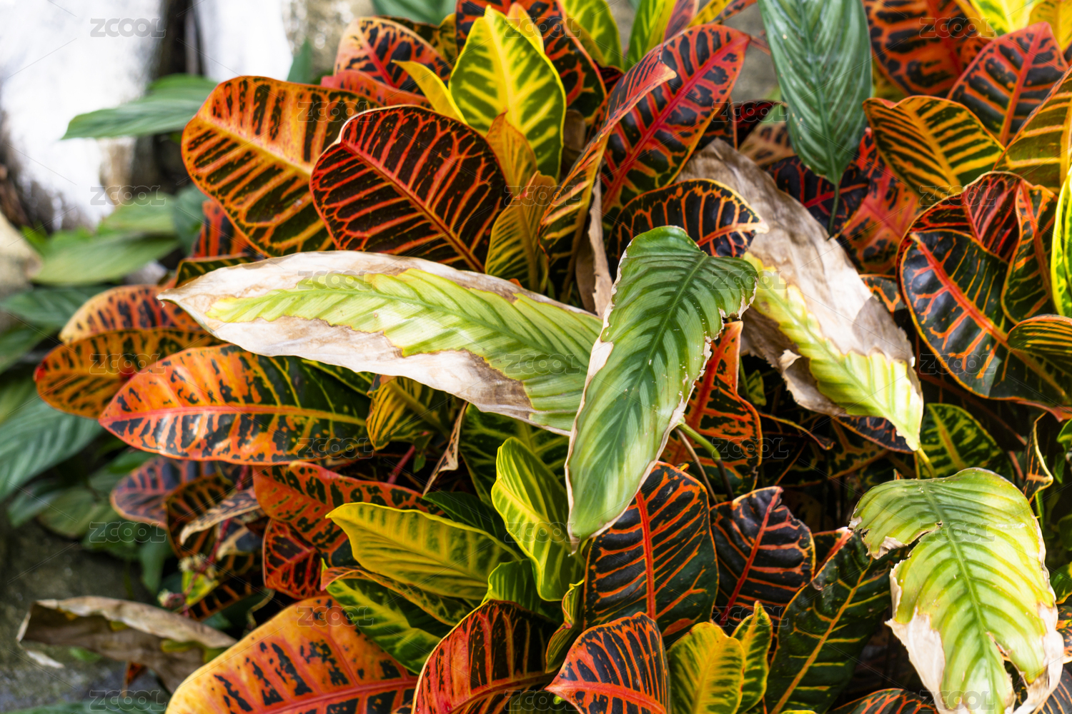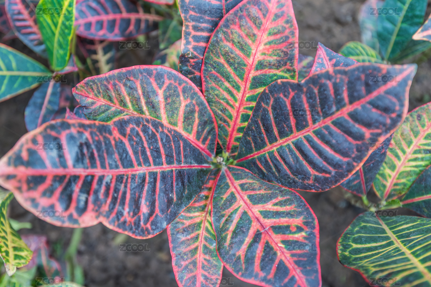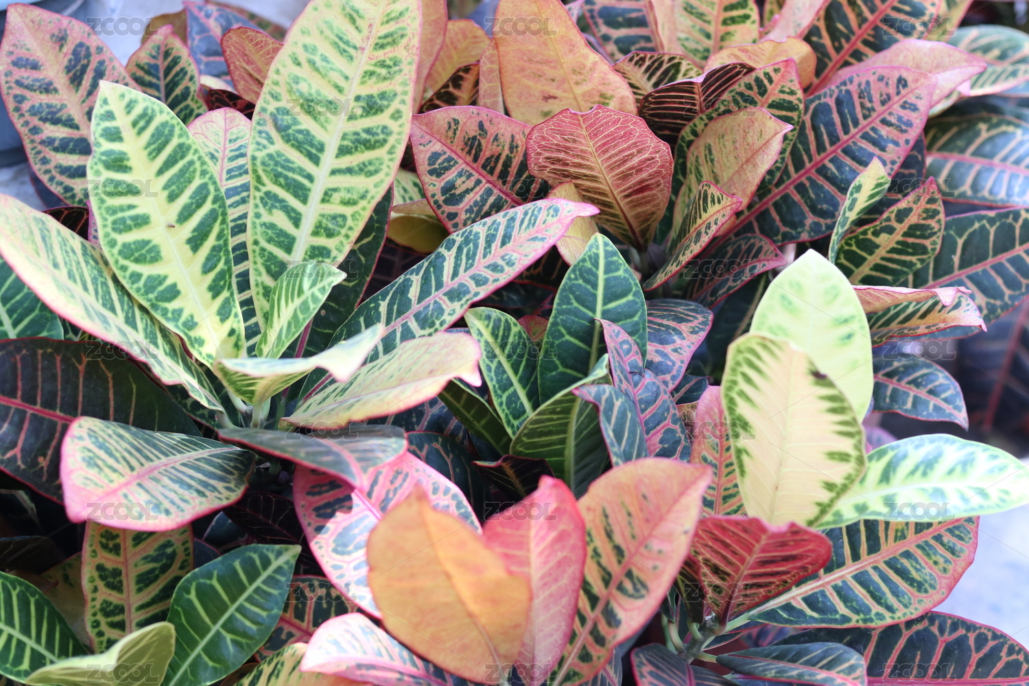 陽光下色彩斑斕的變?nèi)~木植物圖片