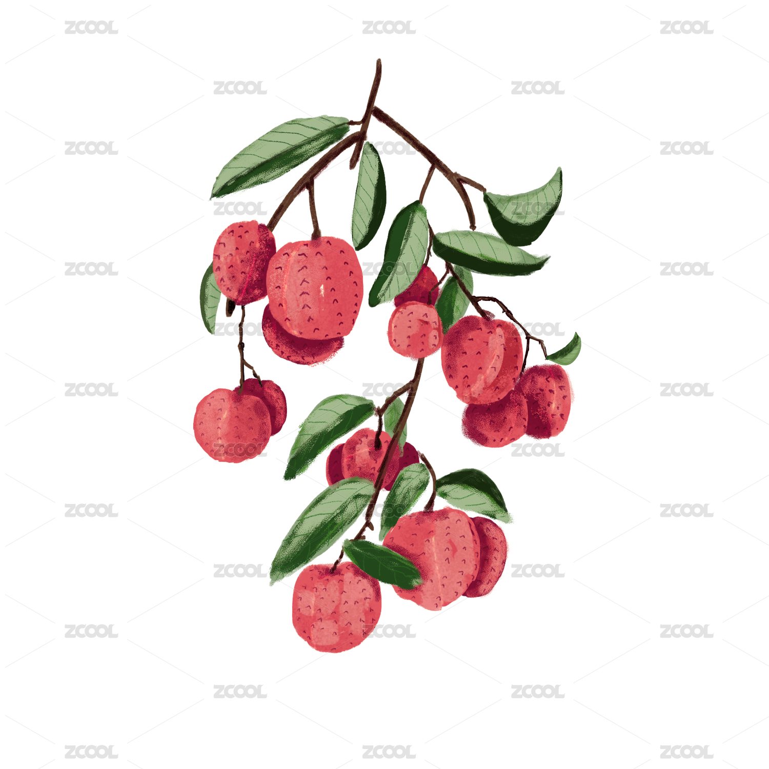二十四節(jié)氣夏季插畫:荔枝+紅耳鵯