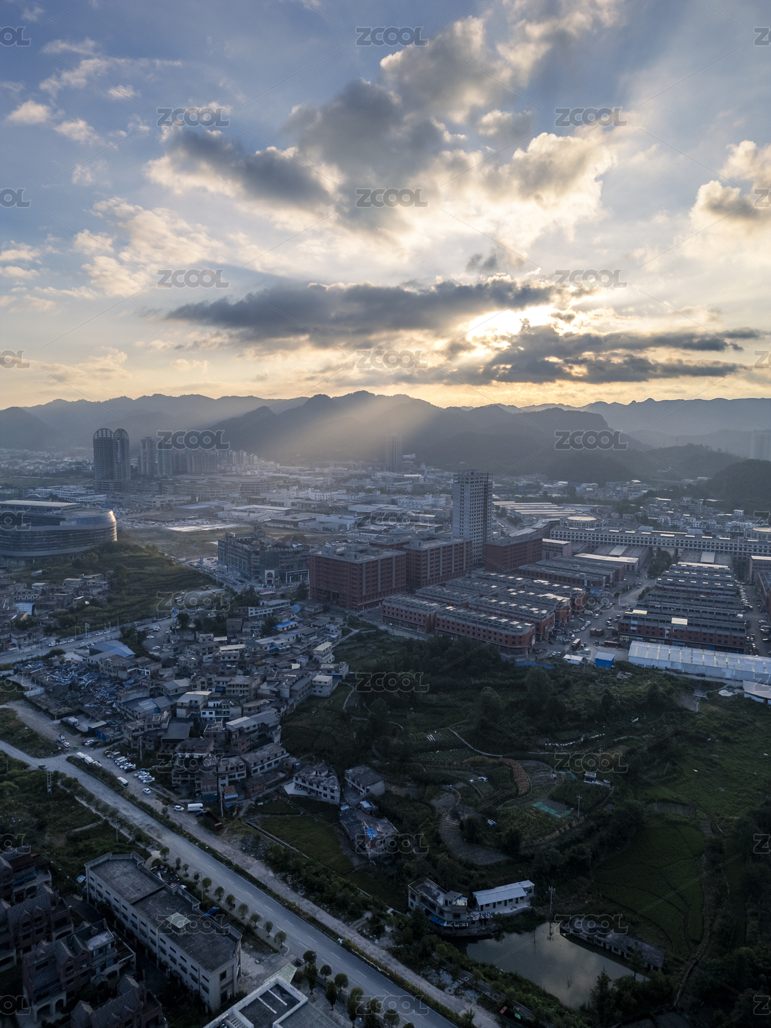貴州省貴陽市花溪國際汽貿(mào)城清晨丁達爾光