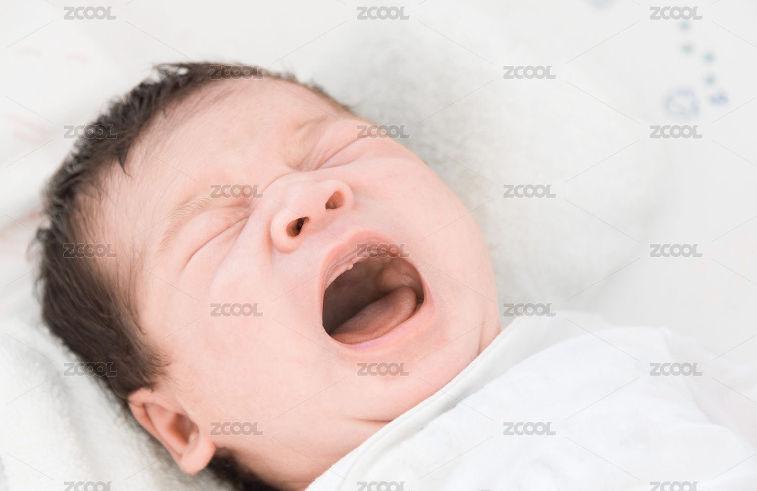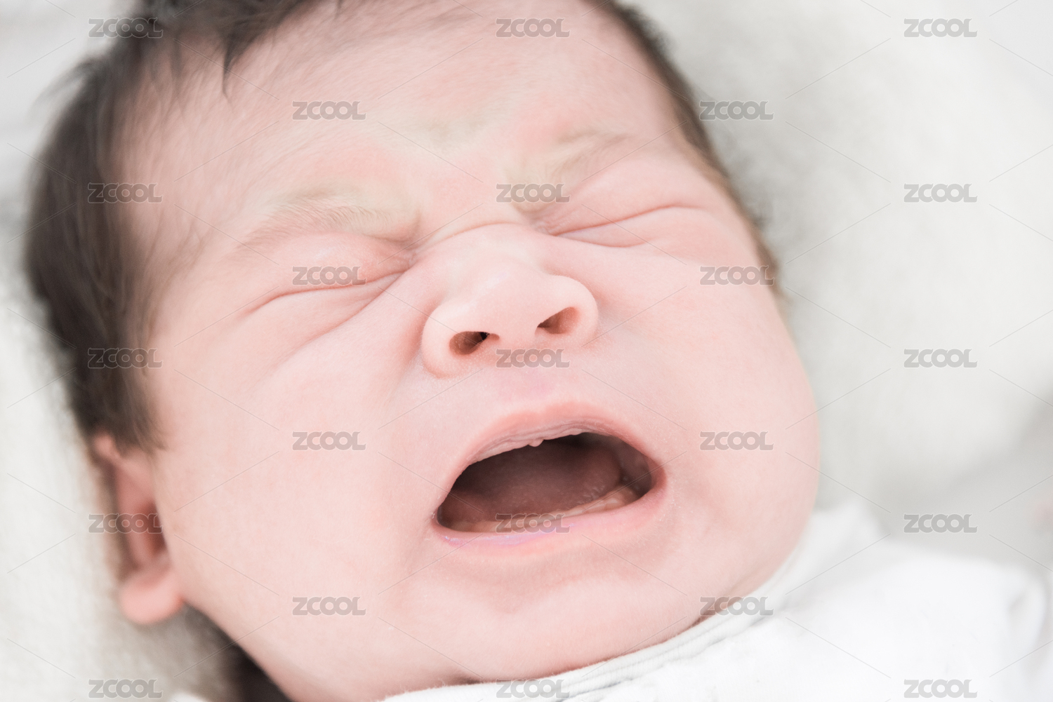 正在哭泣的新生嬰兒面部特寫