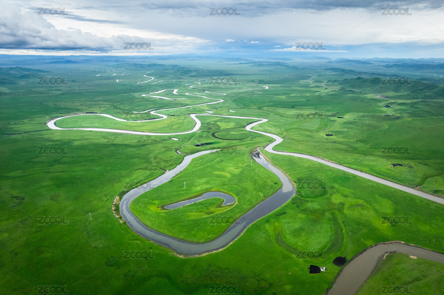 綠色草原濕地河流航拍