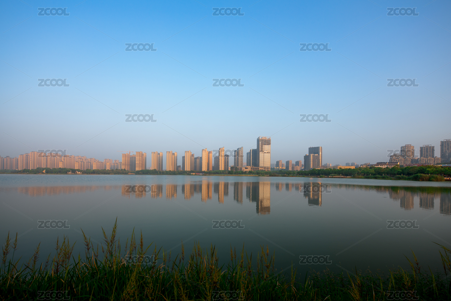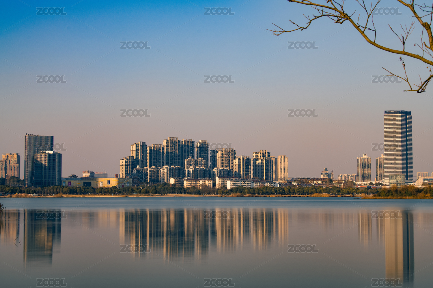 宣城宛陵湖城市倒影