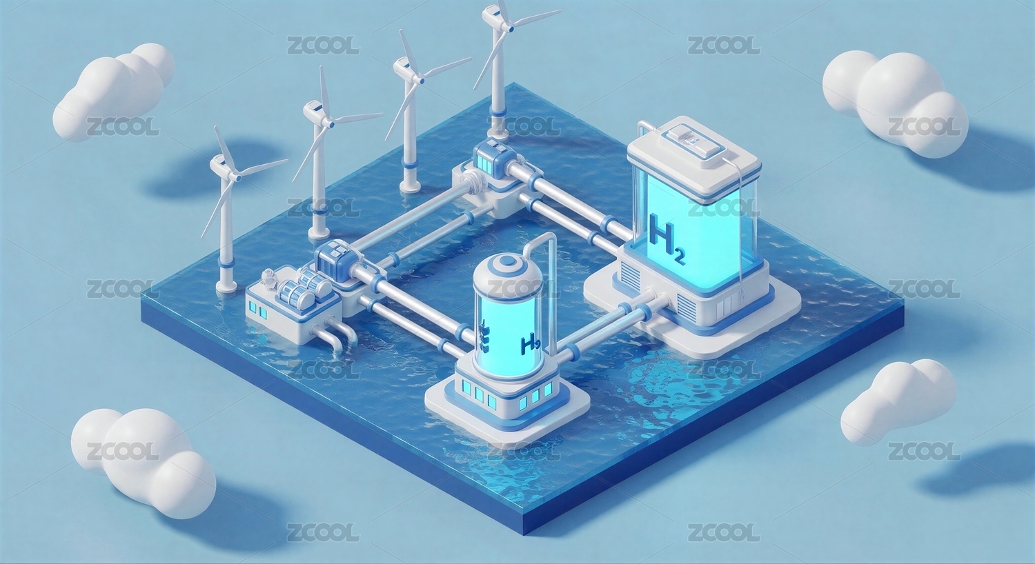 帶有風(fēng)力發(fā)電機(jī)和白云的氫燃料加注站