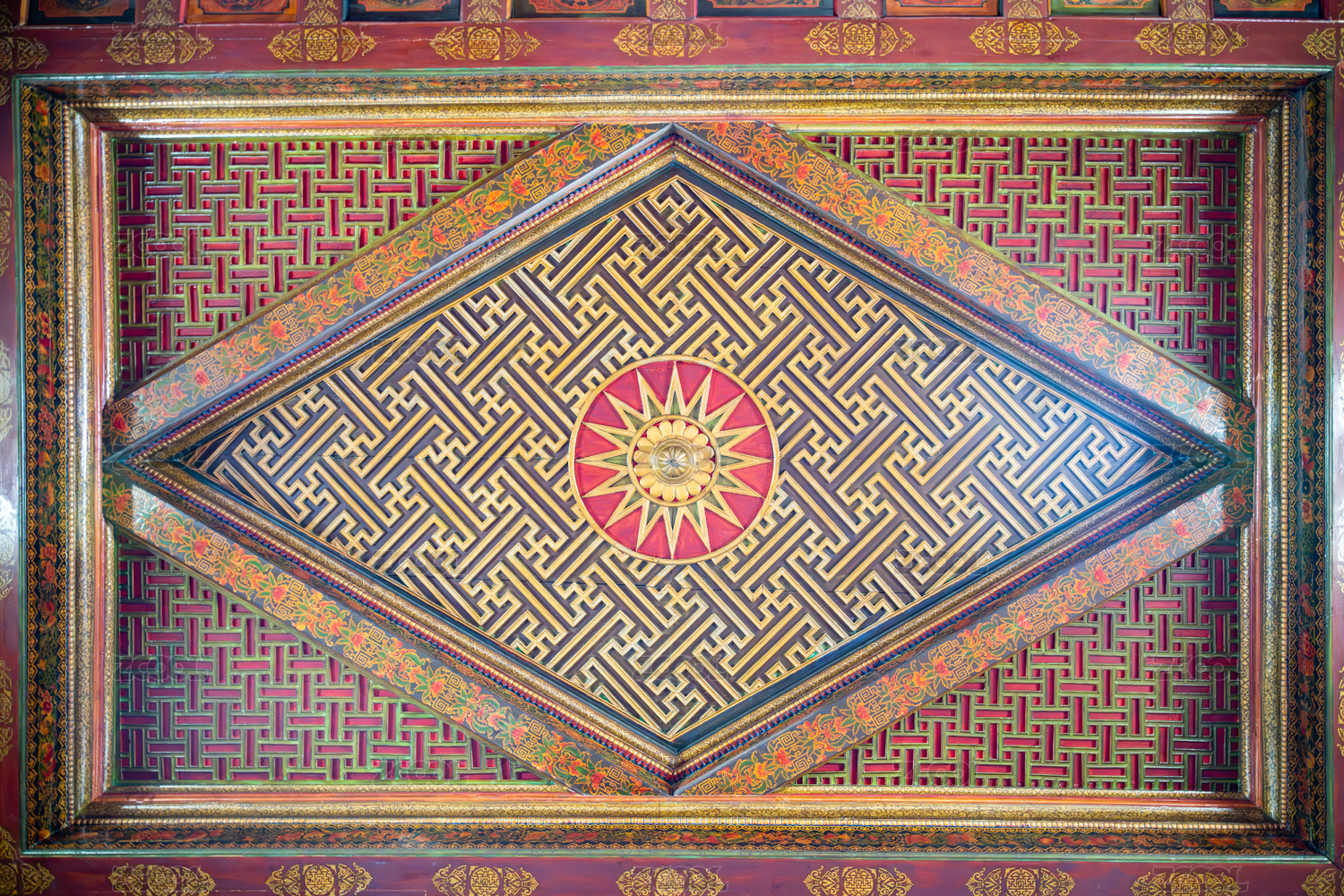 中國(guó)新疆阿克蘇庫(kù)車大清真寺禮拜殿天花藻井