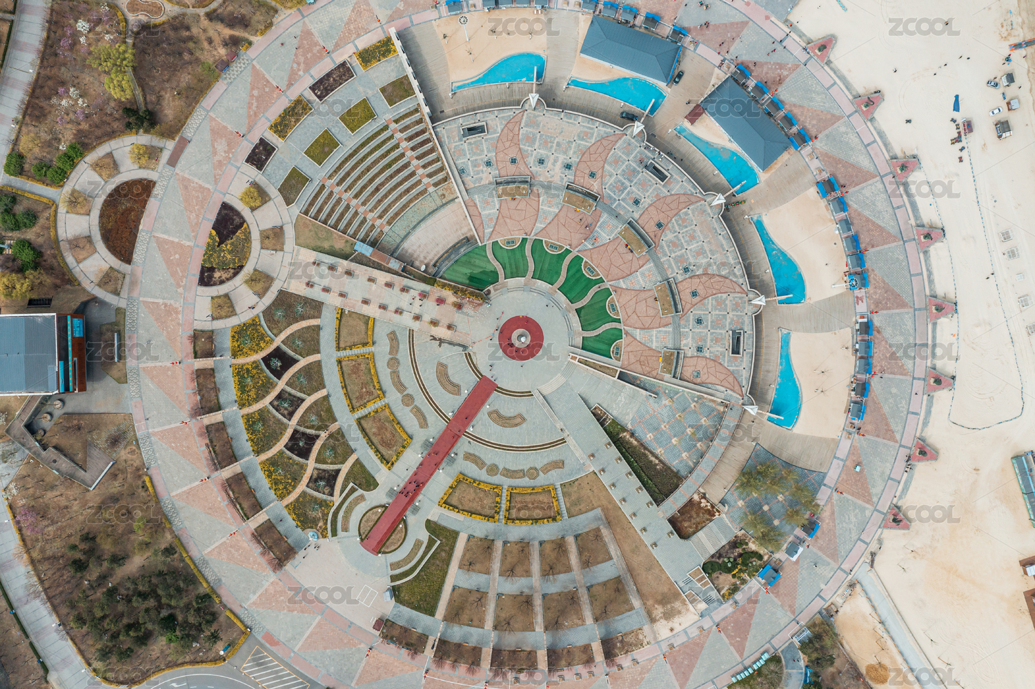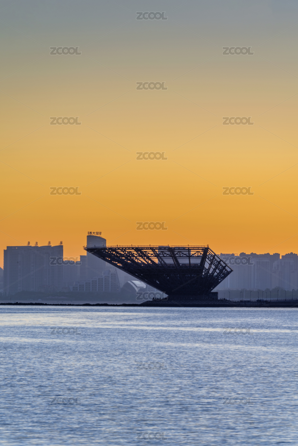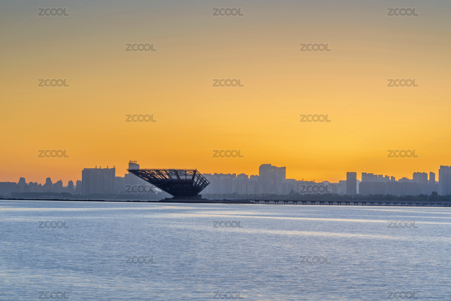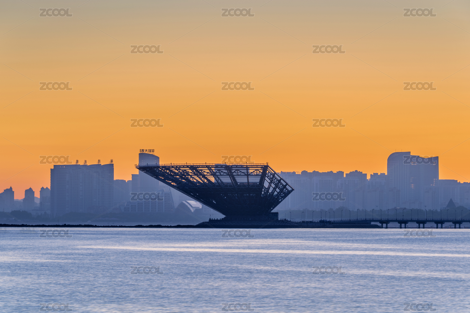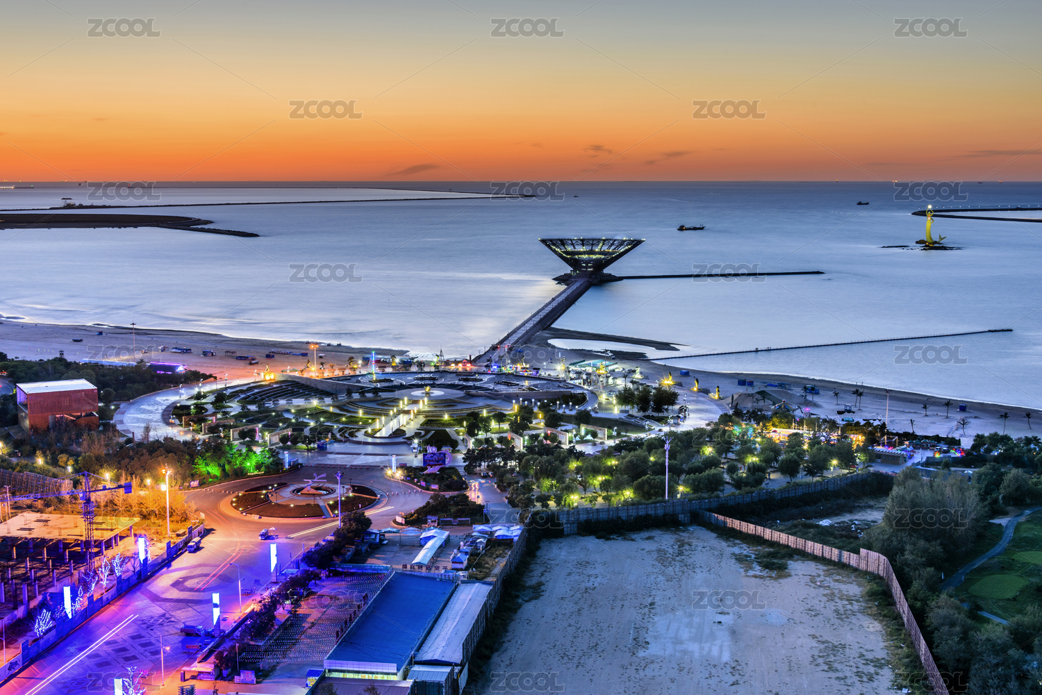 中國遼寧營口鲅魚圈山海廣場清晨風光