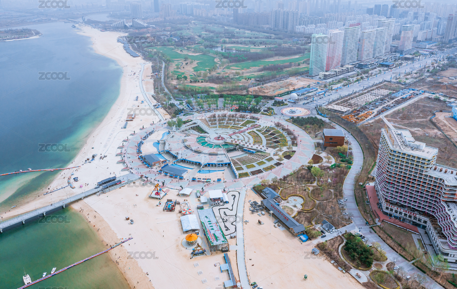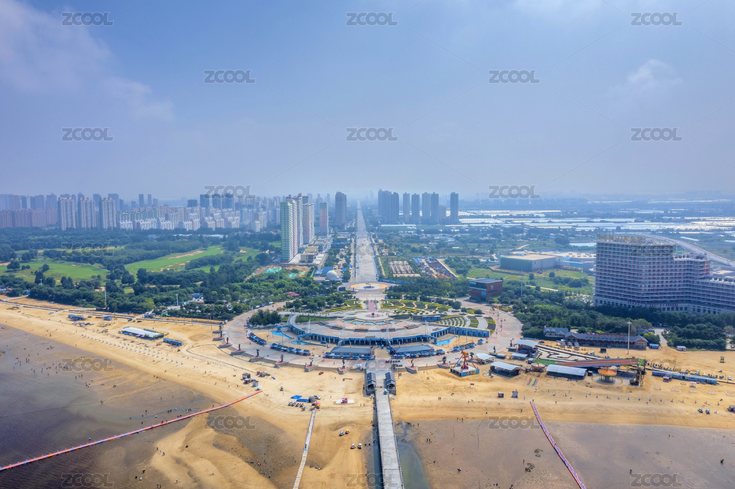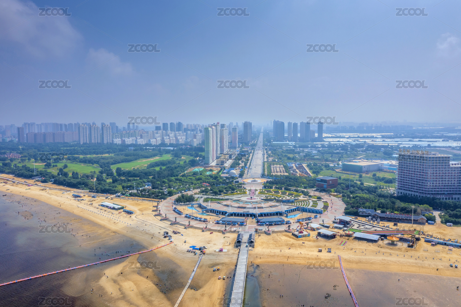 遼寧營口鲅魚圈渤海山海廣場城市海灘風光