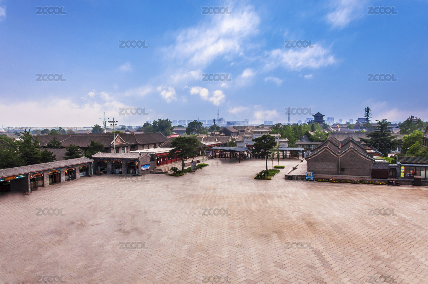 中國秦皇島山海關古城建筑俯視風光