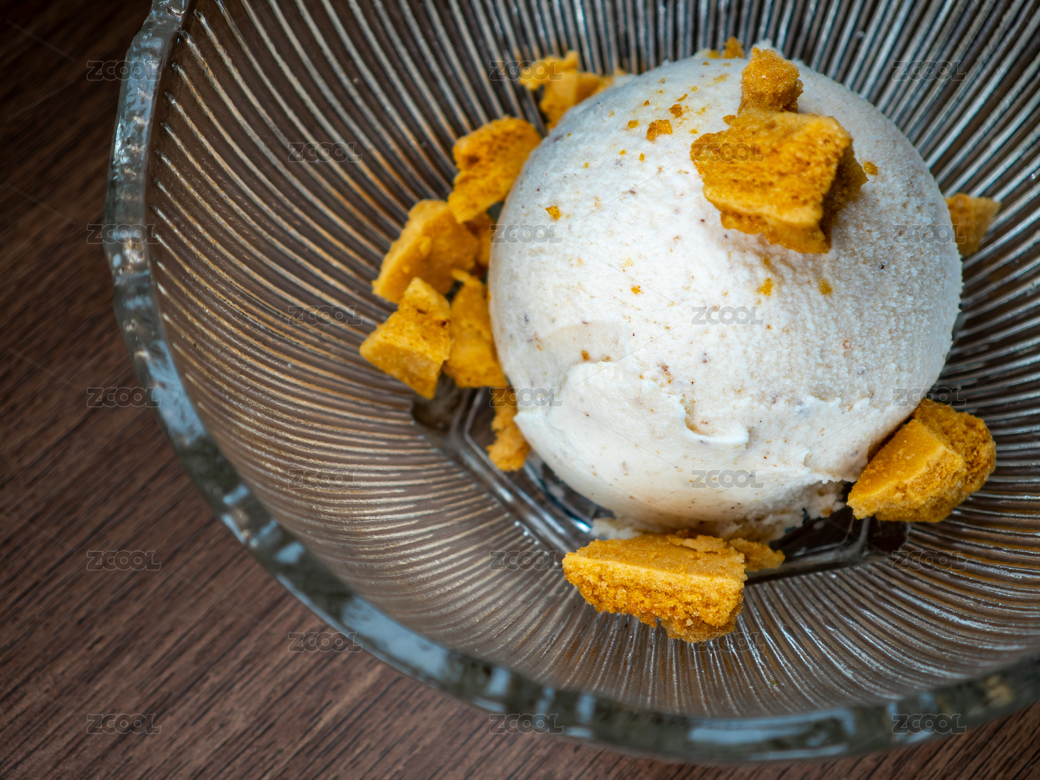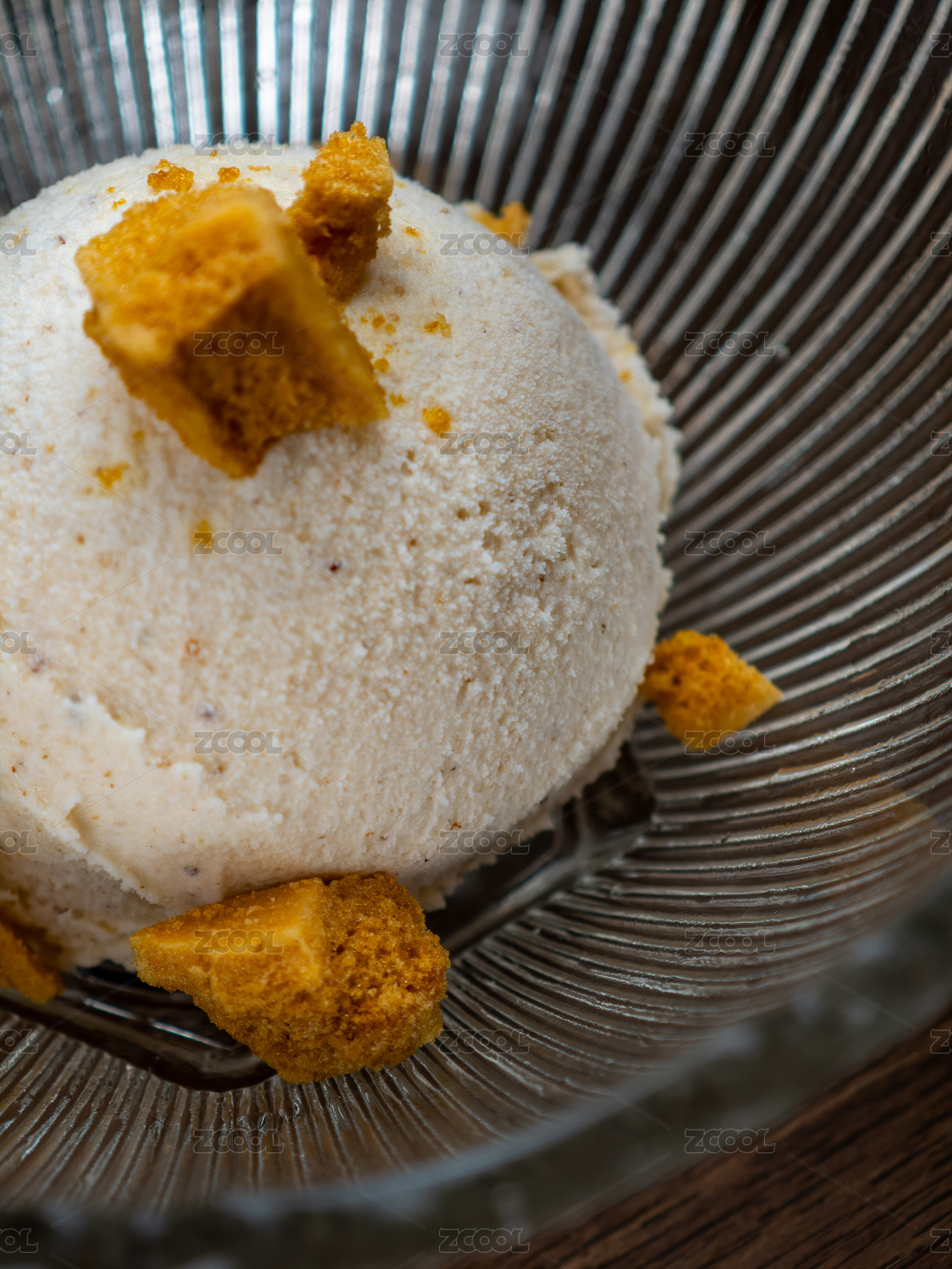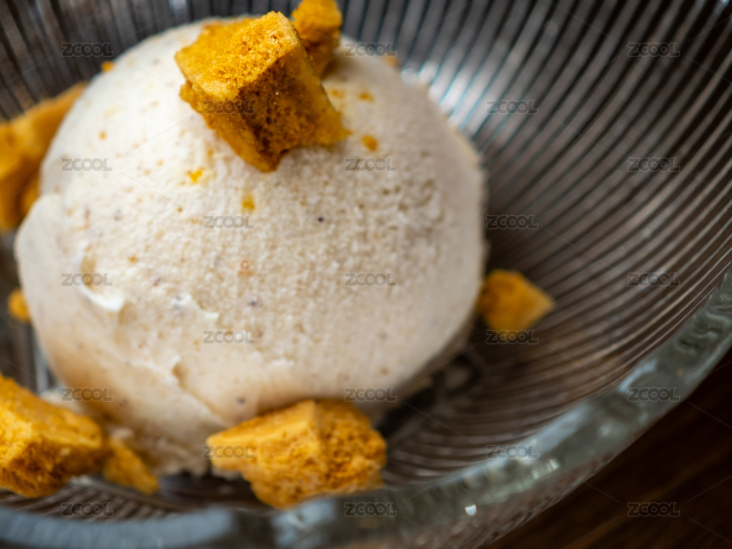 搭配香脆蜂巢糖的白米口味冰淇淋球