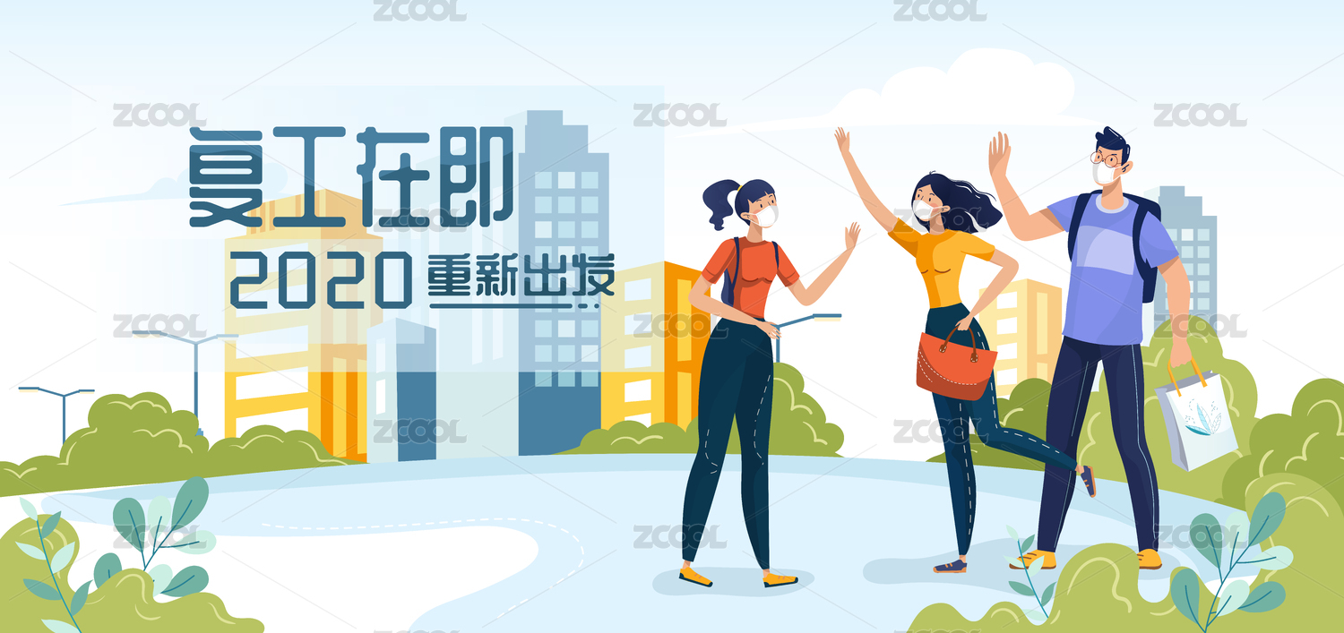 商務(wù)辦公會議人物復工復學抗擊疫情插圖