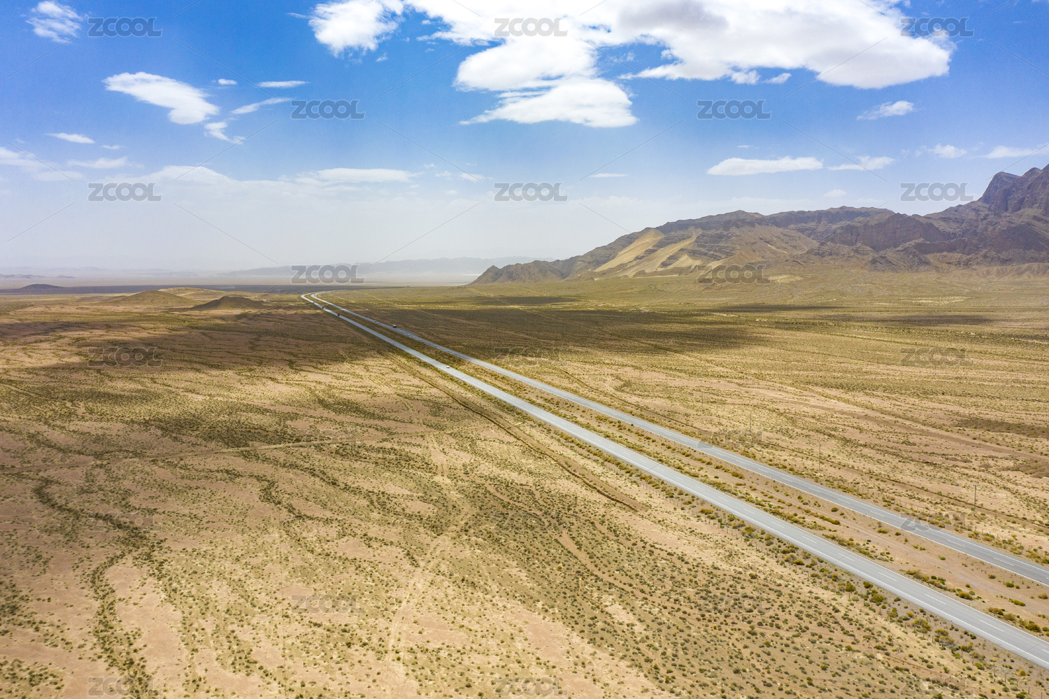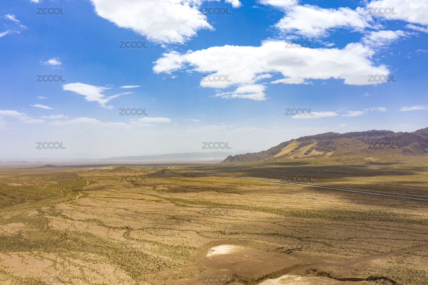 青海海西德小高速無人區(qū)的荒漠石山與公路
