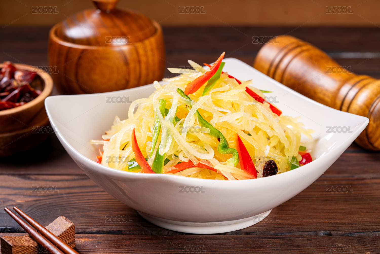 中式餐館美味的涼拌土豆絲